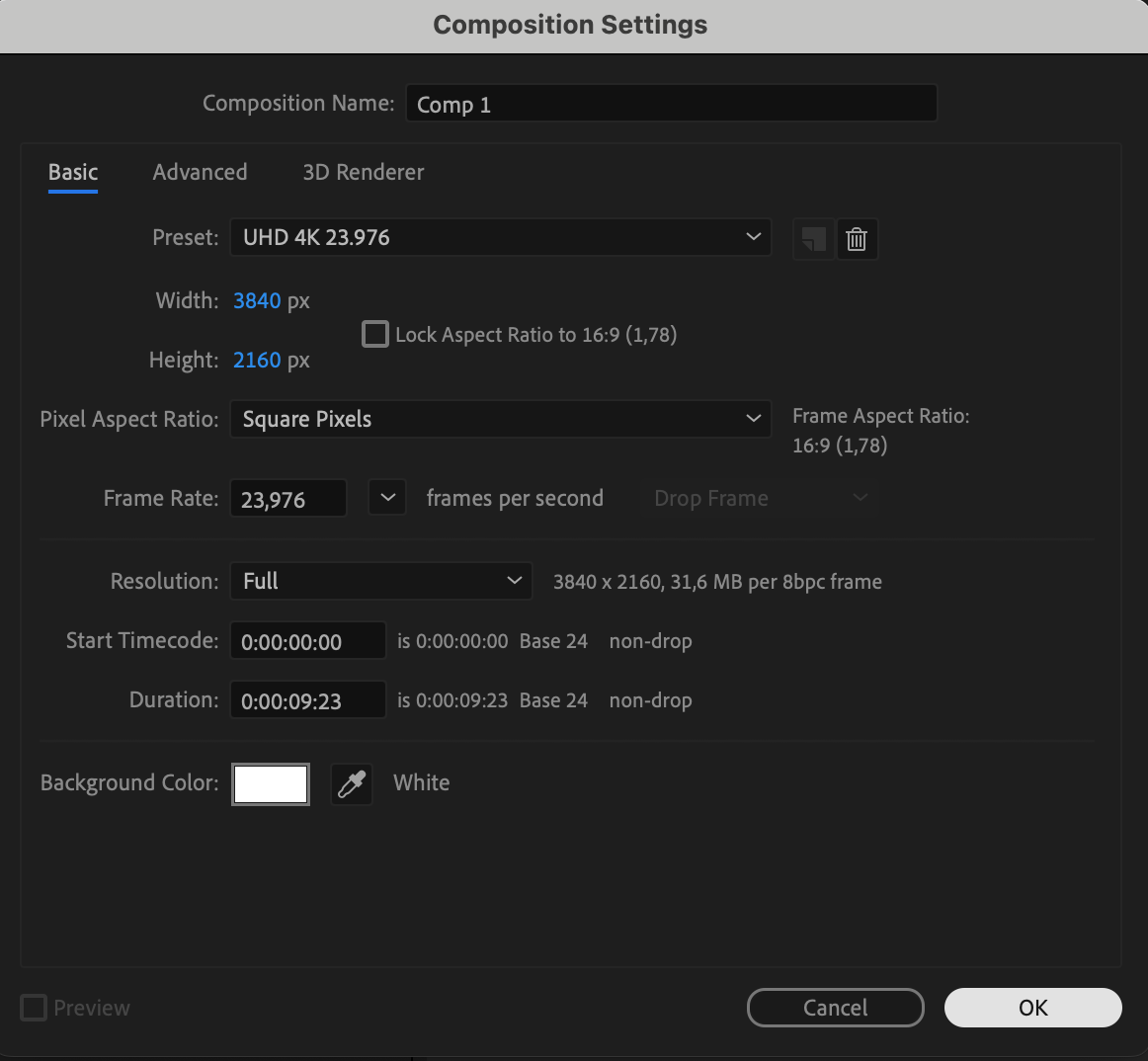 Go to the menu and select “Composition”, then choose “New Composition”. Set the desired settings for your composition, such as resolution and duration. Ensure that the composition matches the settings of your video clip.