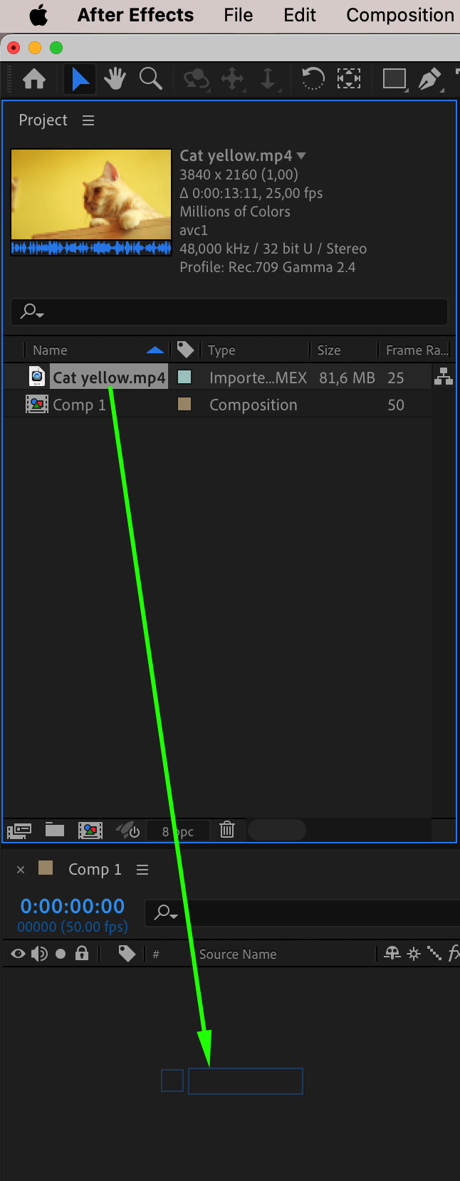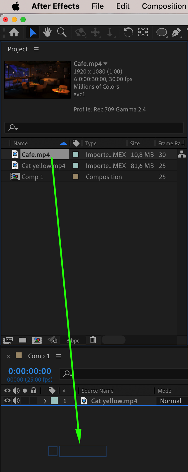 Begin by importing your video clip into After Effects. Navigate to the menu and select “File”, then “Import”, followed by “File”. Choose your video file from the dialog box that appears.