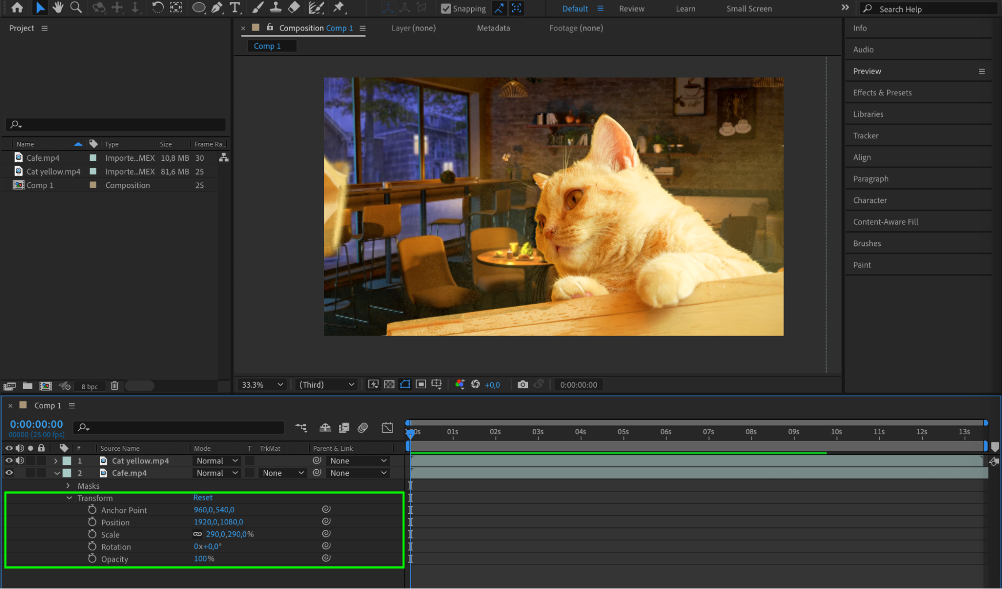 You may need to adjust the positioning, scale, or opacity of the background layer to align it properly with the subject in the video. Use the Transform controls in the Layer panel to make these adjustments.