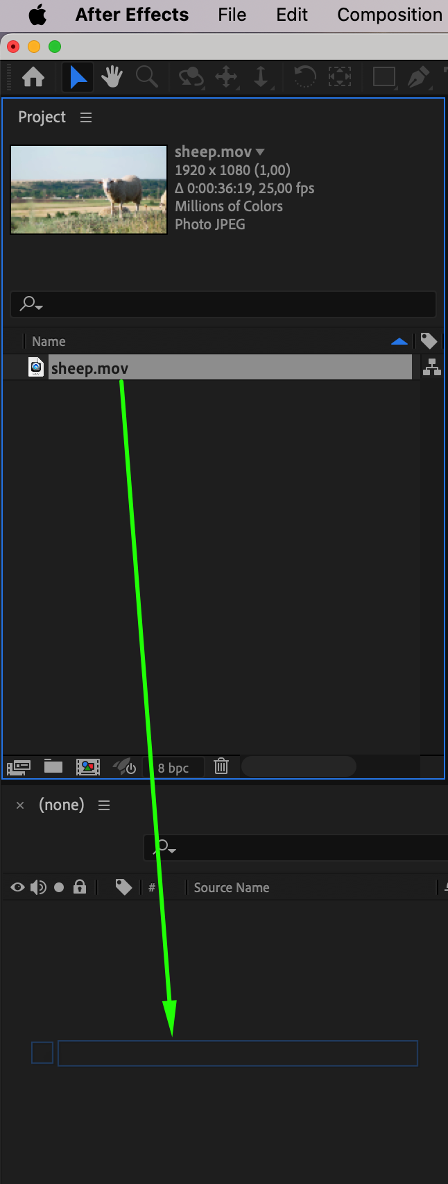 The first step is to bring your shaky footage into After Effects. Go to the File menu, click Import > File and select the video file you wish to stabilize. Once the file is imported, drag it onto the Timeline to start working on it. Having your footage on the timeline allows you to preview and assess the level of shake.