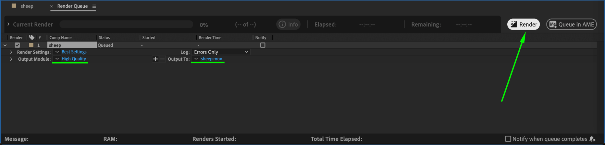 Once you’re happy with the stabilization, it’s time to render your video. Go to Composition > Add to Render Queue. In the Render Queue panel, choose your desired format and quality settings, and then click Render. Your stabilized video is now ready for export and can be used in your project.