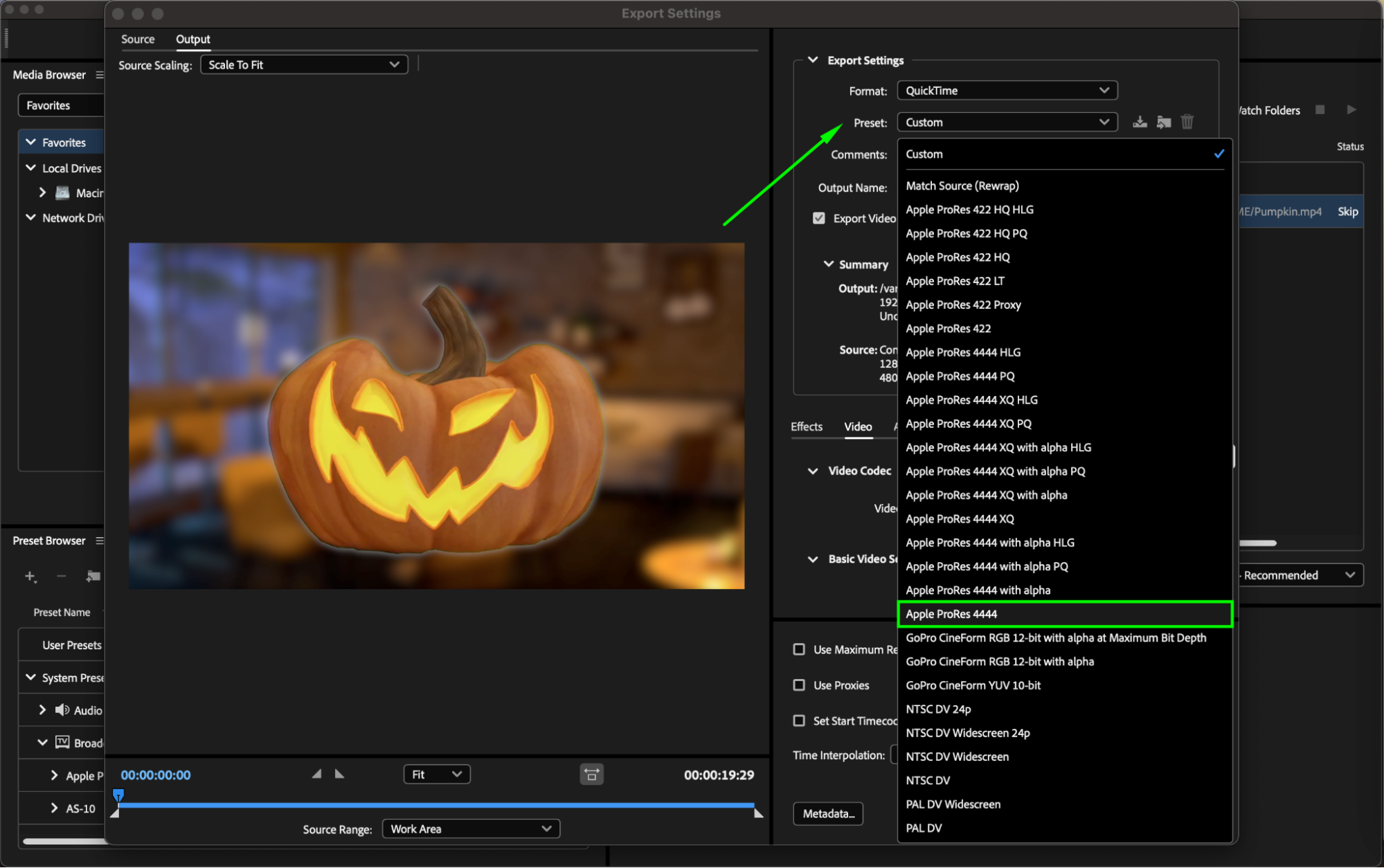 Choose a suitable preset that aligns with your project’s specifications and output needs.