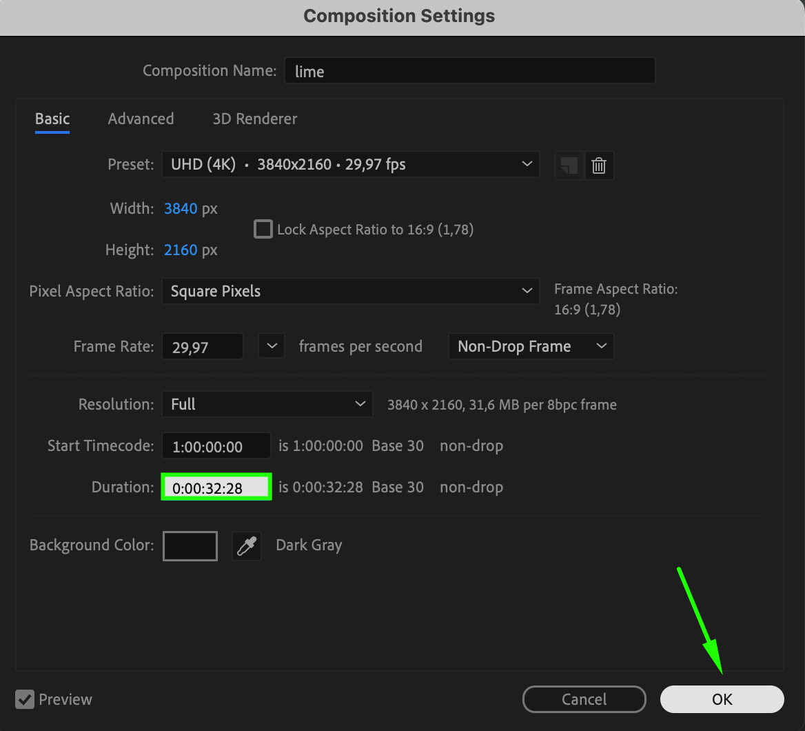 To create space for the repeated sequence, adjust the duration of the composition. Go to Composition > Composition Settings, and double the duration. For example, if the original composition is 15 seconds long, change it to 30 seconds. This will give room for the repeated part.