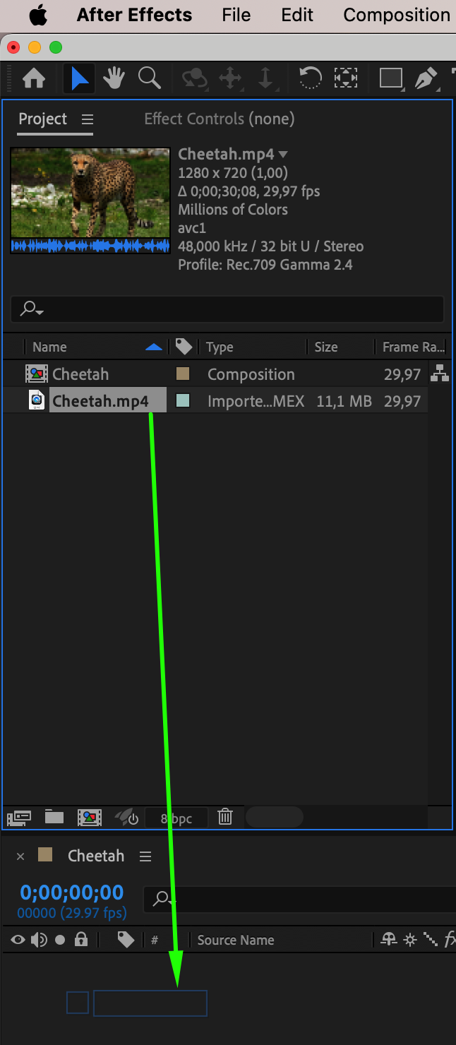 Drag the video onto the composition panel.