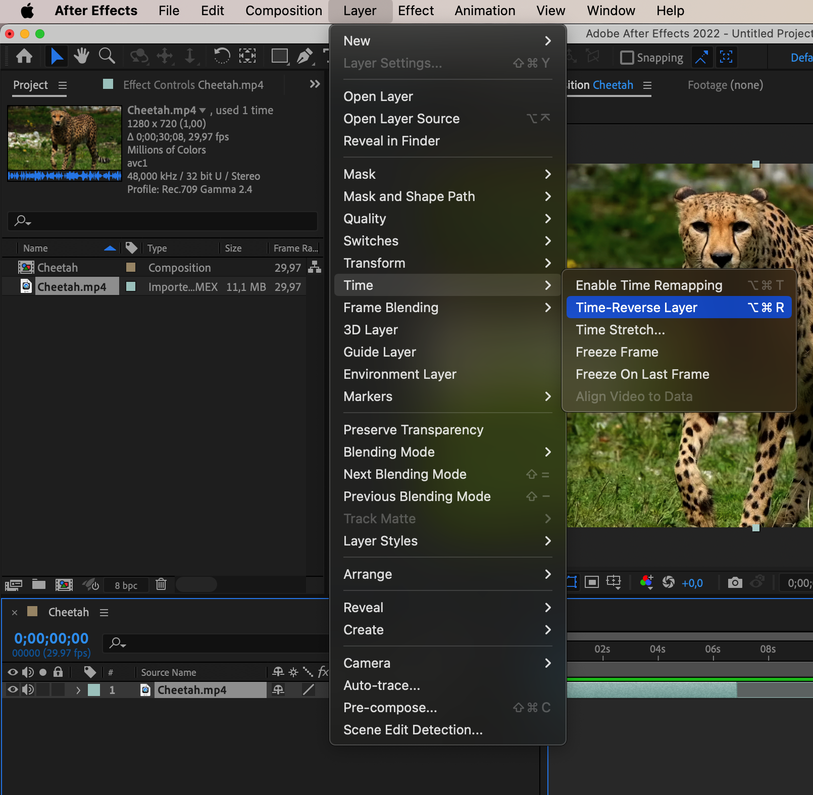 2. Apply Time Reverse Layer Effect: