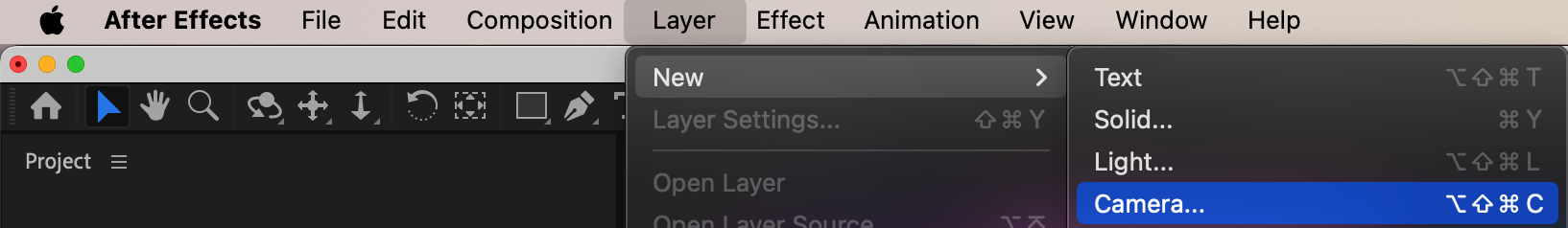 Start by opening your project in After Effects. Make sure that your composition contains layers that are set to 3D, so the camera will have elements to interact with.