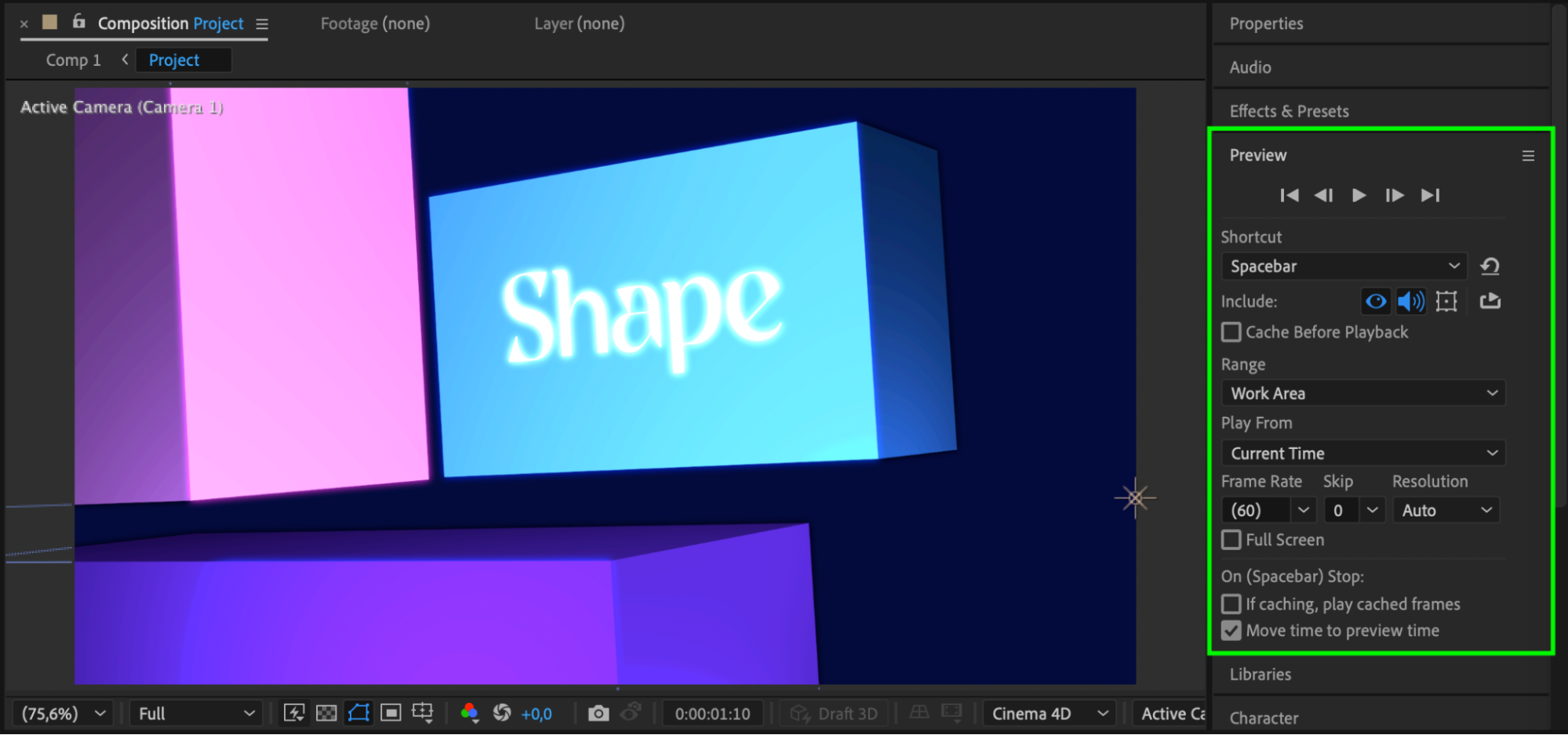 Press the spacebar to preview your animation. If you are happy with the result, go to Composition > Add to Render Queue or use Adobe Media Encoder to export your final project.