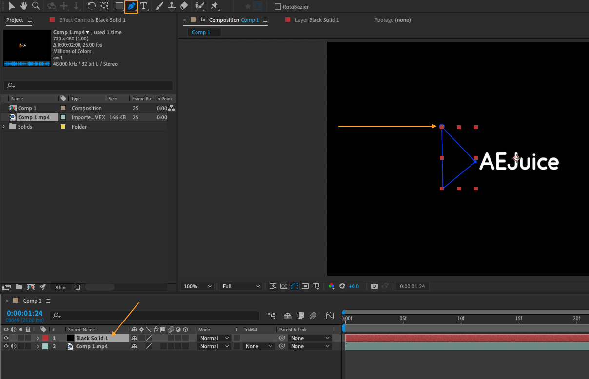 3. Create a new solid layer and use the Pen tool to draw a mask around the element you wish to rotoscope. Fine-tune the mask path as needed to accurately trace the element.