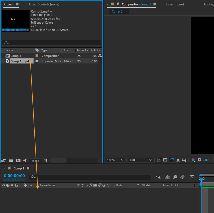 2. Drag the video clip into the composition.
