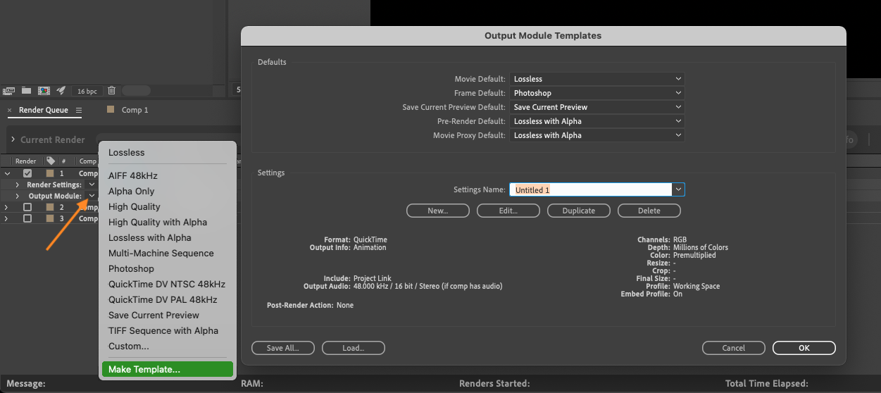 4. Use Render Queue: