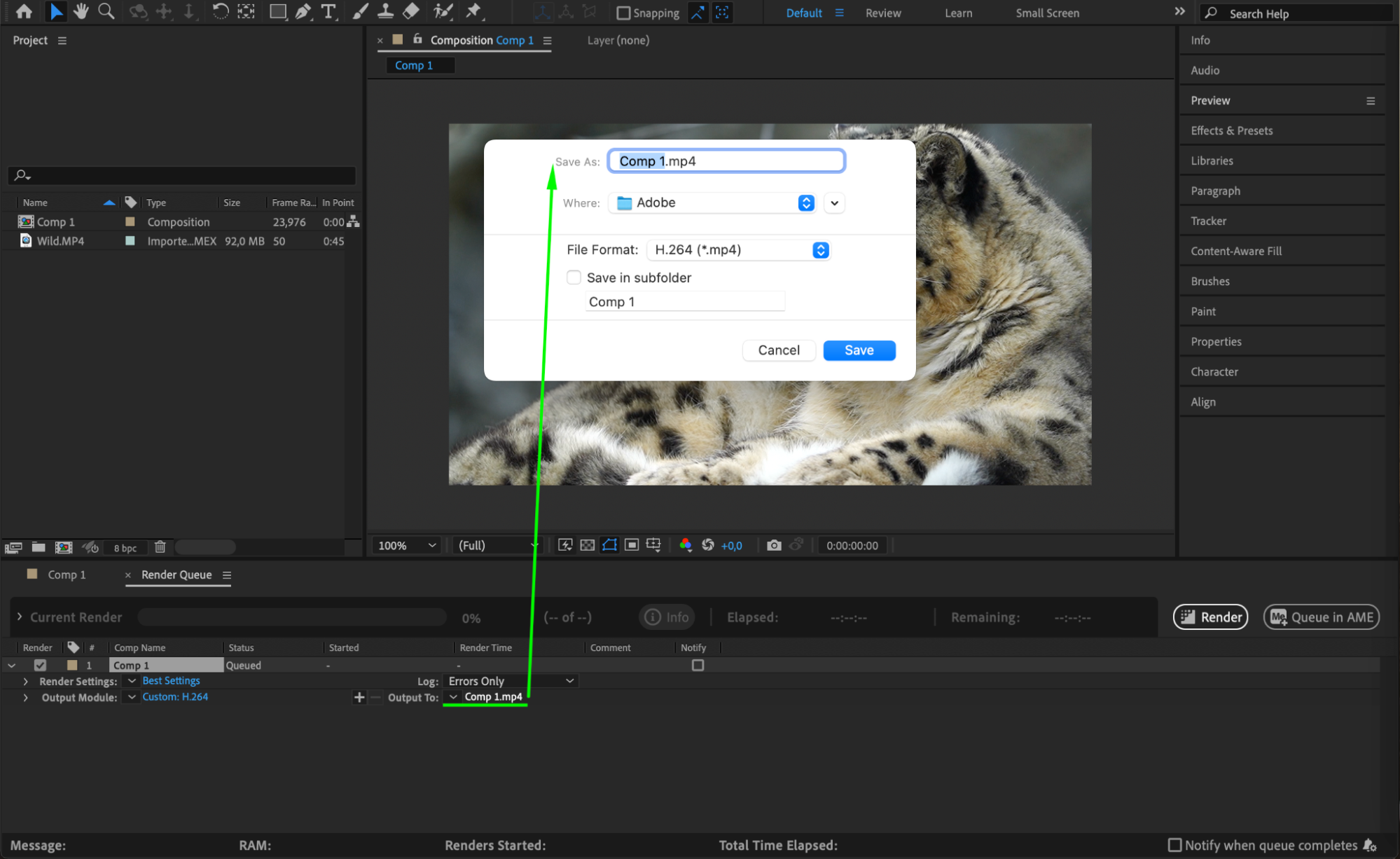 Exporting Your Video as MP4 in After Effects