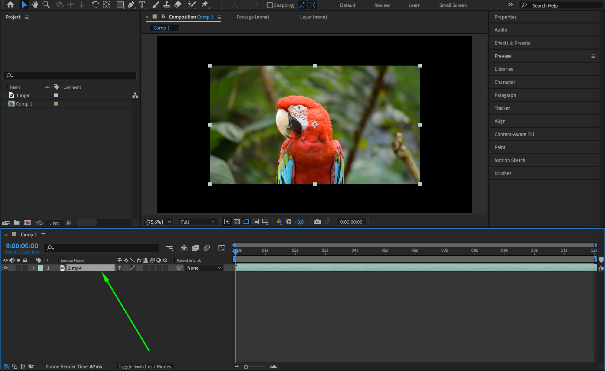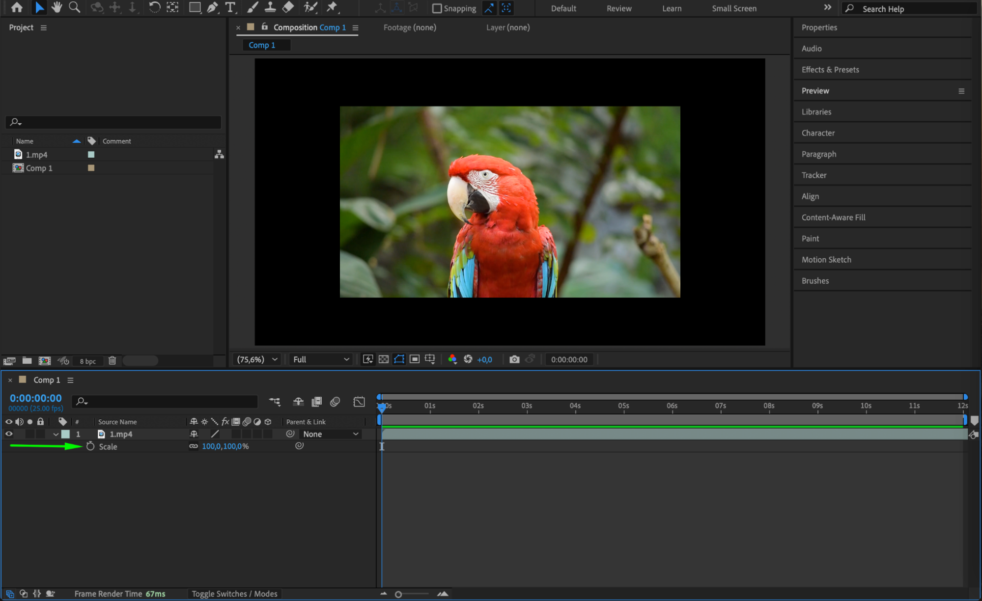 After scaling and positioning your layer, press the spacebar to preview the result. Make sure the resized asset looks good inside the composition without unwanted stretching or empty borders.