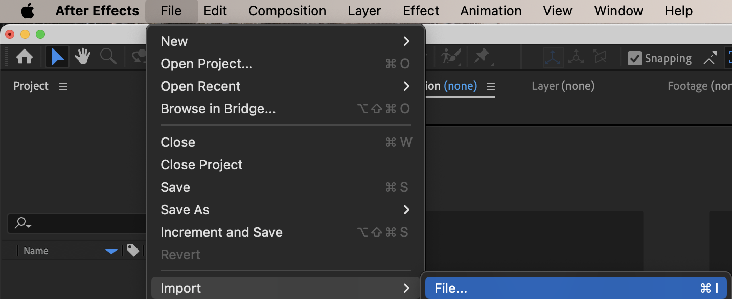 The file will now appear inside the Project panel. You can also double-click inside the Project panel to open the import window.