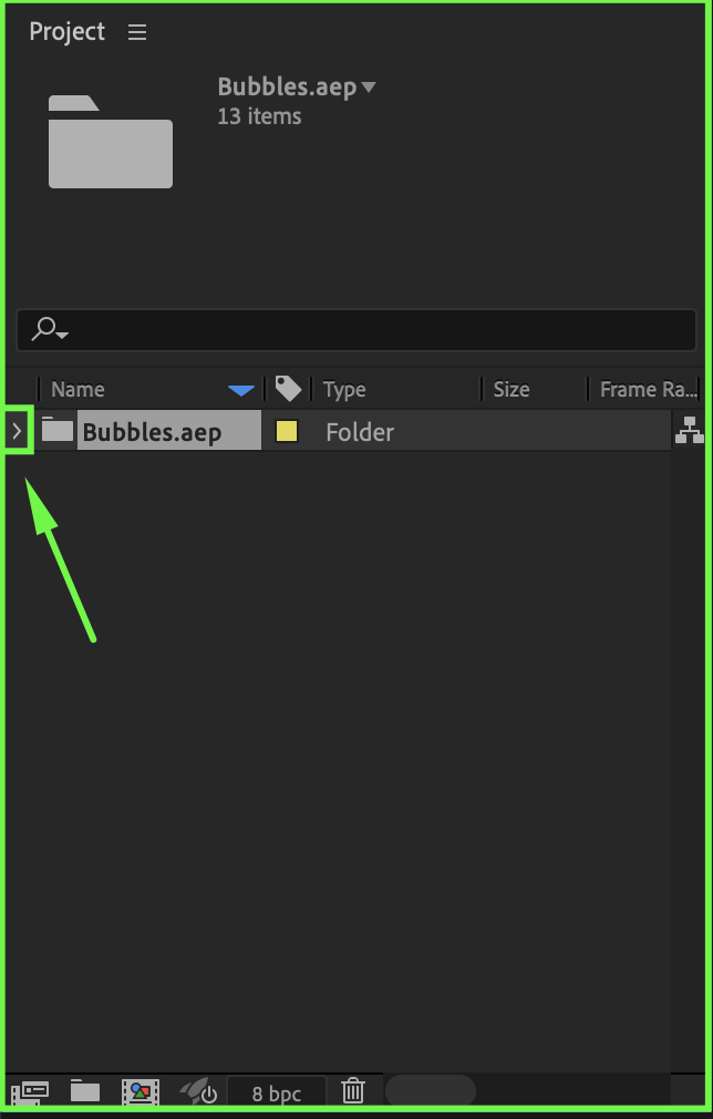Sometimes imported files are automatically placed inside folders (for example, when importing from Premiere Pro or using organized templates). Expand any folders in the Project panel to locate your files. You can use the small arrow icon next to a folder to open it.