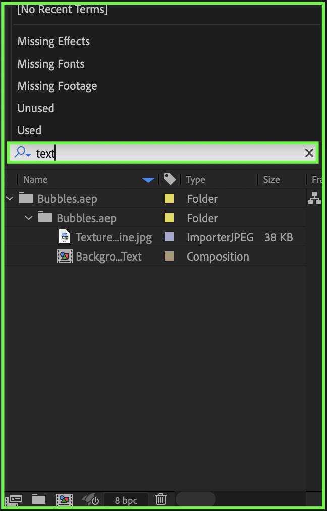 Use the Search bar at the top of the Project panel.