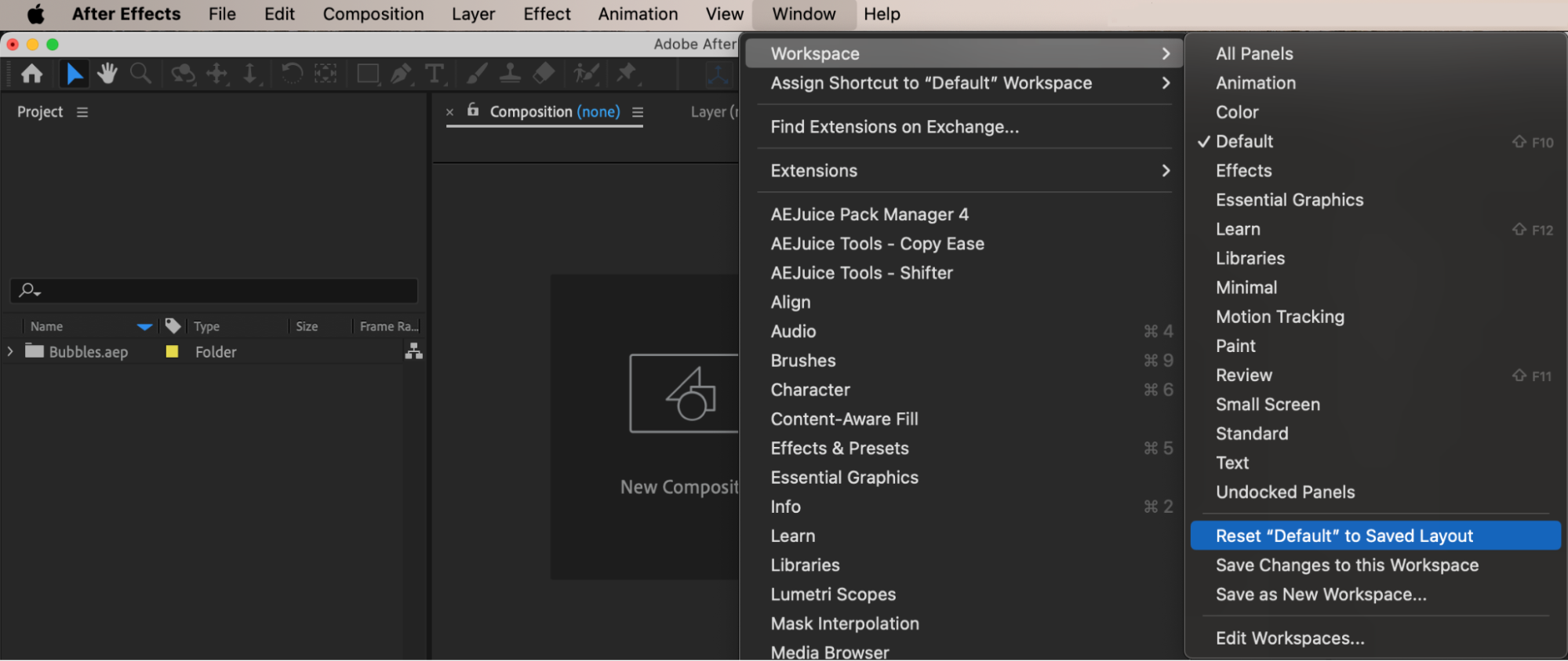 If the Project panel is missing or your workspace looks different: