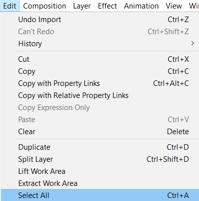 1. Select the Layer: To begin, select the layer you want to work within the composition timeline. You can do this by clicking on the layer or using the hotkey “Ctrl/Cmd + A”.