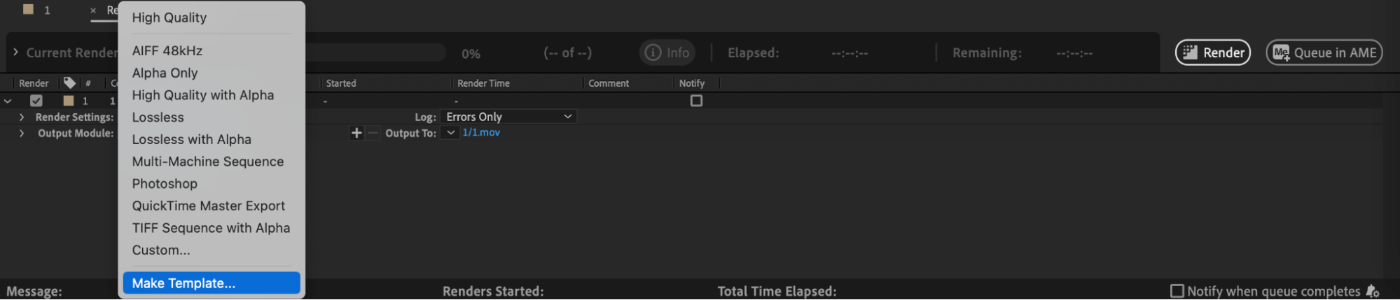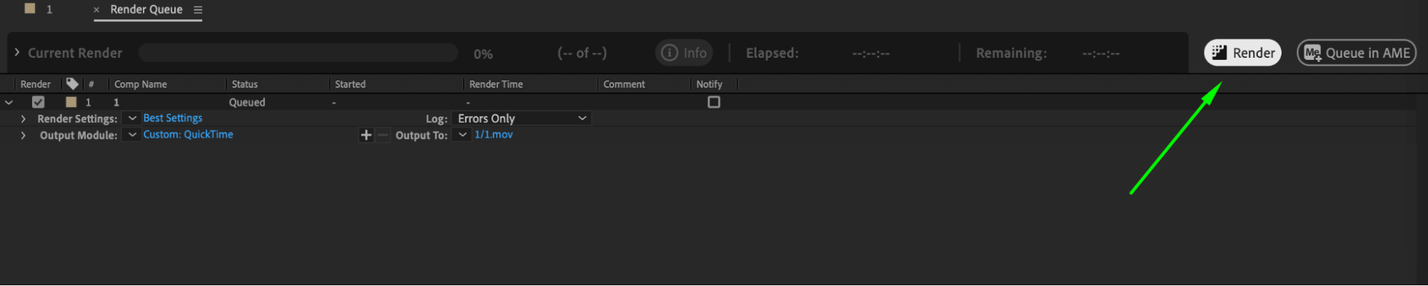 Click on the Render button to start the rendering process. After Effects will process your composition with the selected settings and save the result to the specified location.