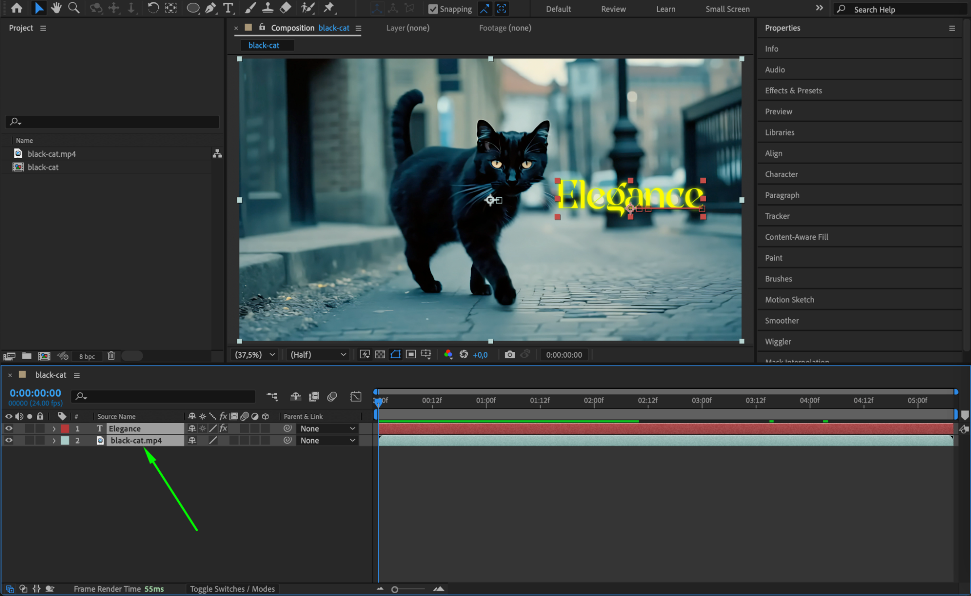To start, make sure you have selected the layer(s) containing keyframes. Click on a single layer or hold “Shift” to select multiple layers in the Timeline panel. If you want to view keyframes for all layers, simply don’t select anything.