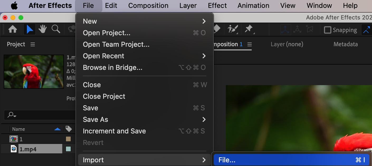 Begin by importing your audio files into Adobe After Effects. Navigate to the “File” menu and select “Import” to locate and import your audio files into the project. After that, drag your file onto the composition panel.