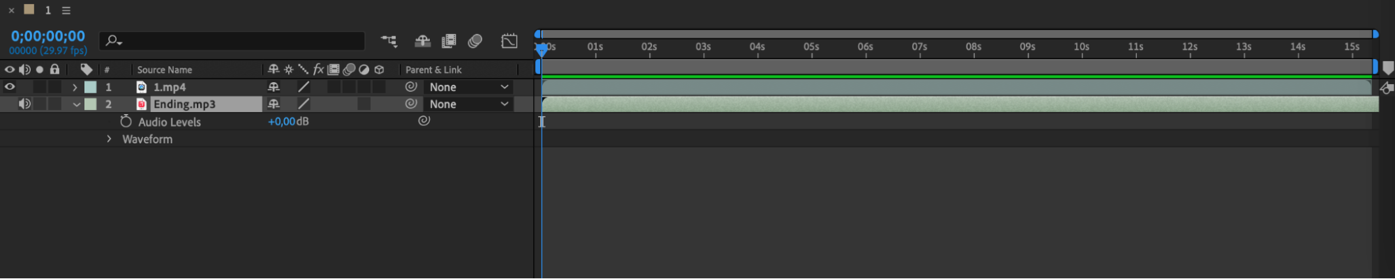 Once your audio files are imported, press the “L” key to open Audio Levels and press “LL” to open Waveform.