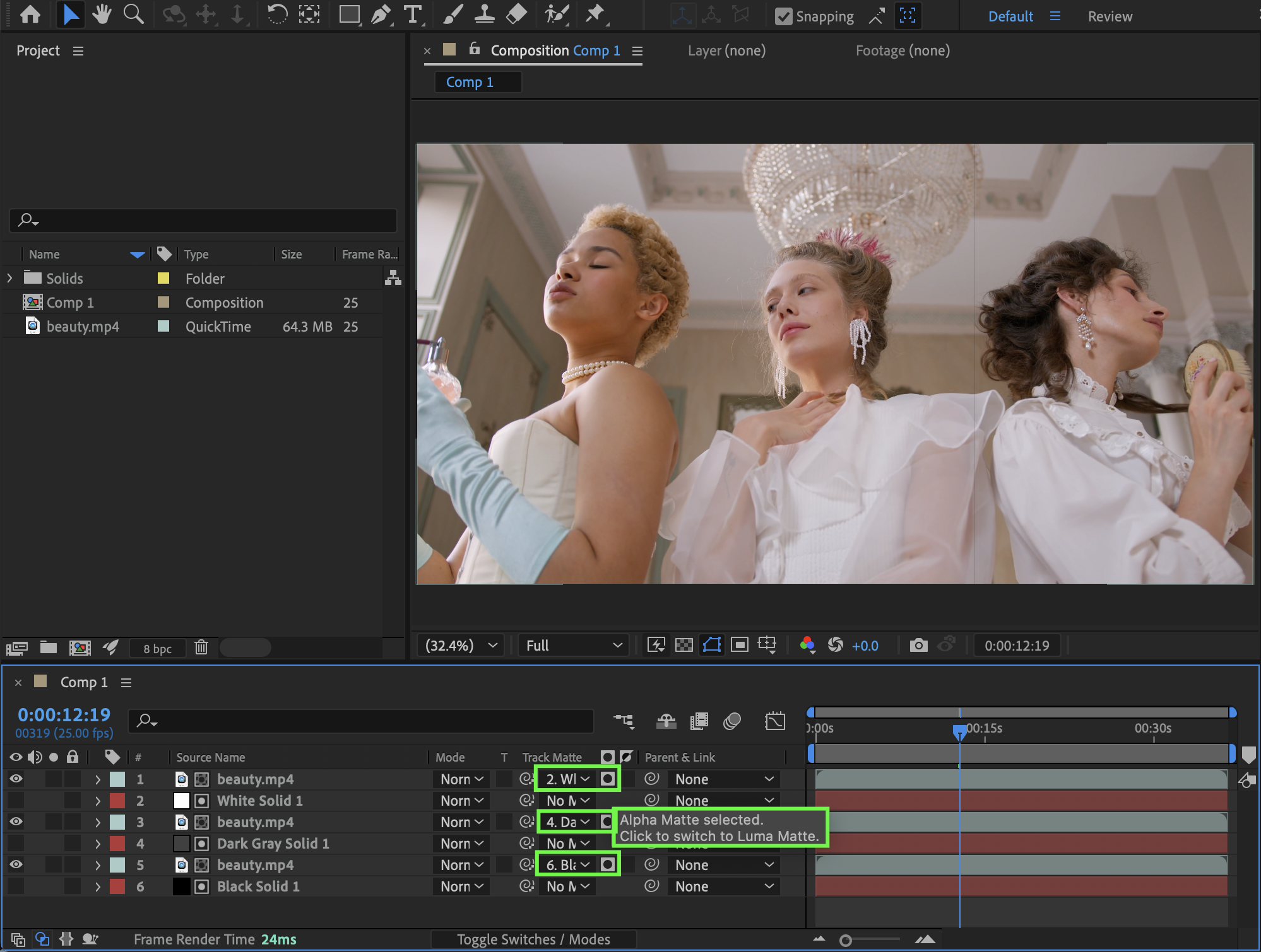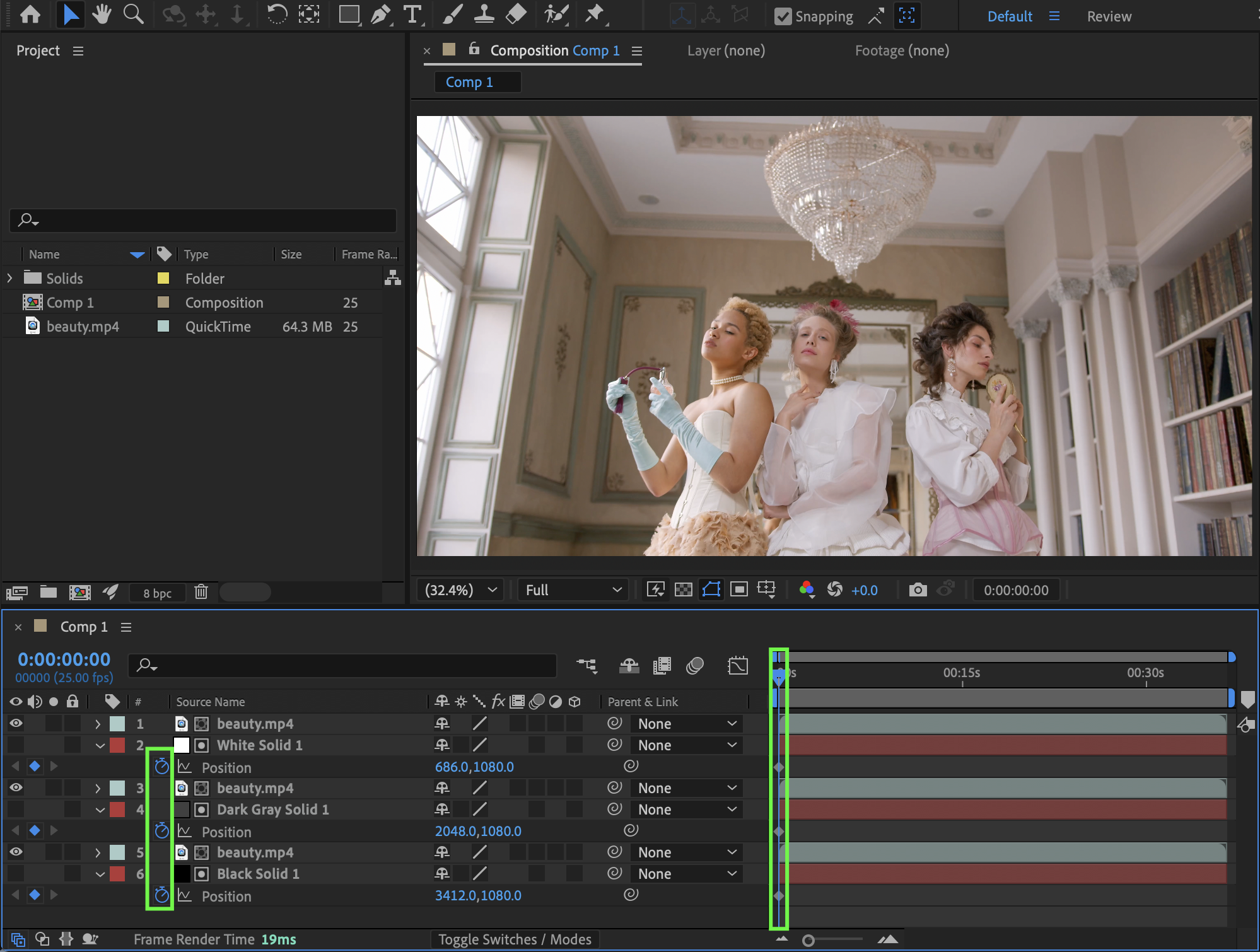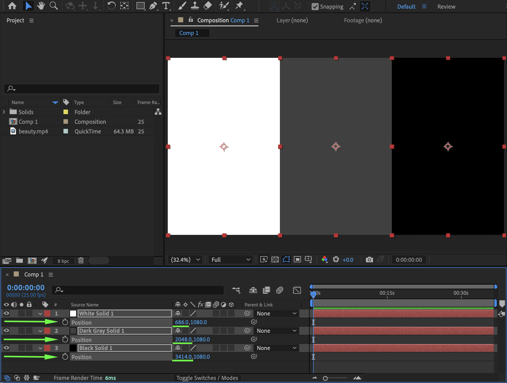 By using solids as track mattes, you can easily slice a single clip into multiple sections and animate them independently. This technique is flexible, resolution-independent, and perfect for creative transitions, split-screen layouts, and modern motion design.