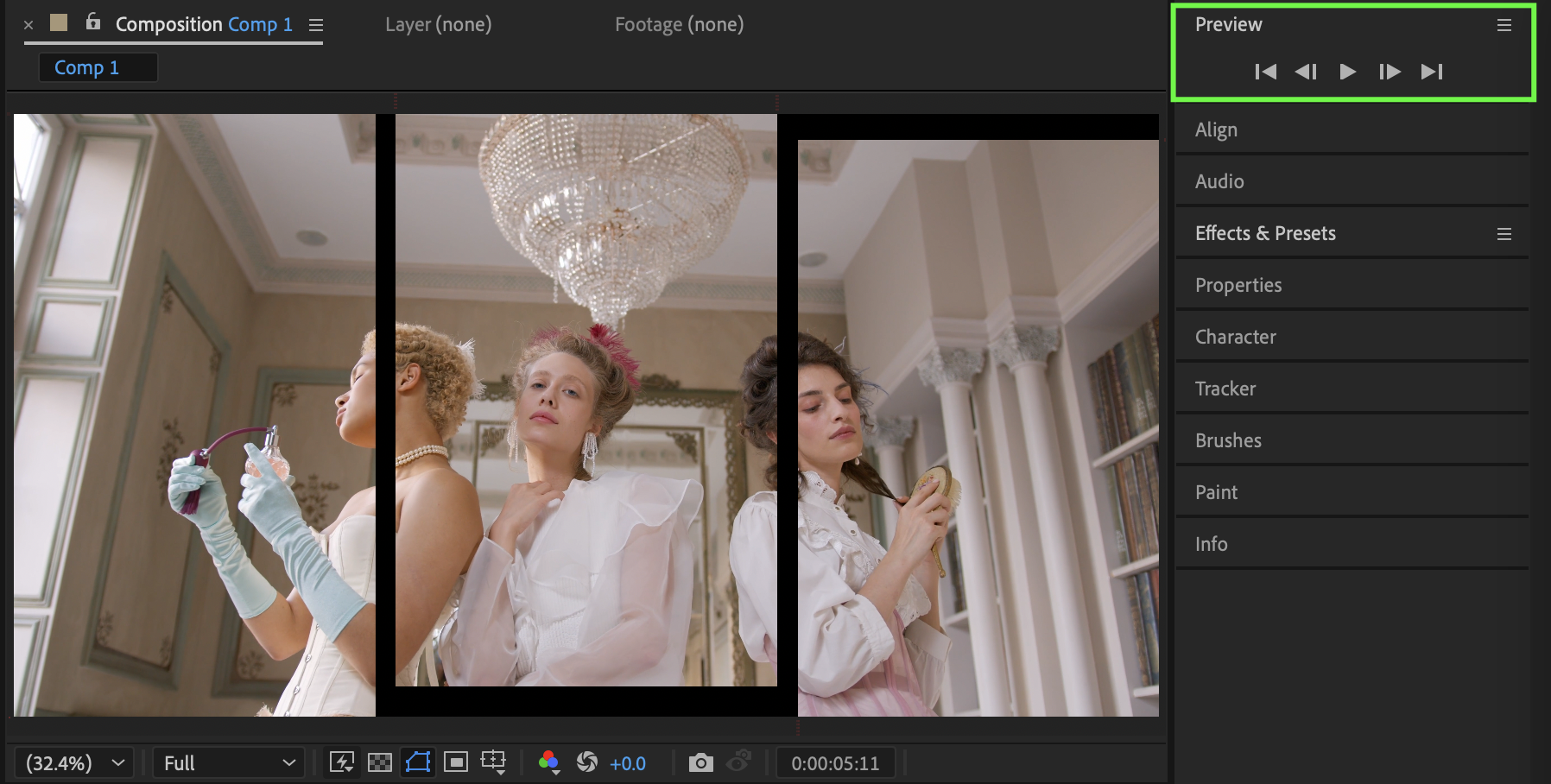 Preview the composition and adjust spacing, timing, or easing until the slice animation feels clean and dynamic.