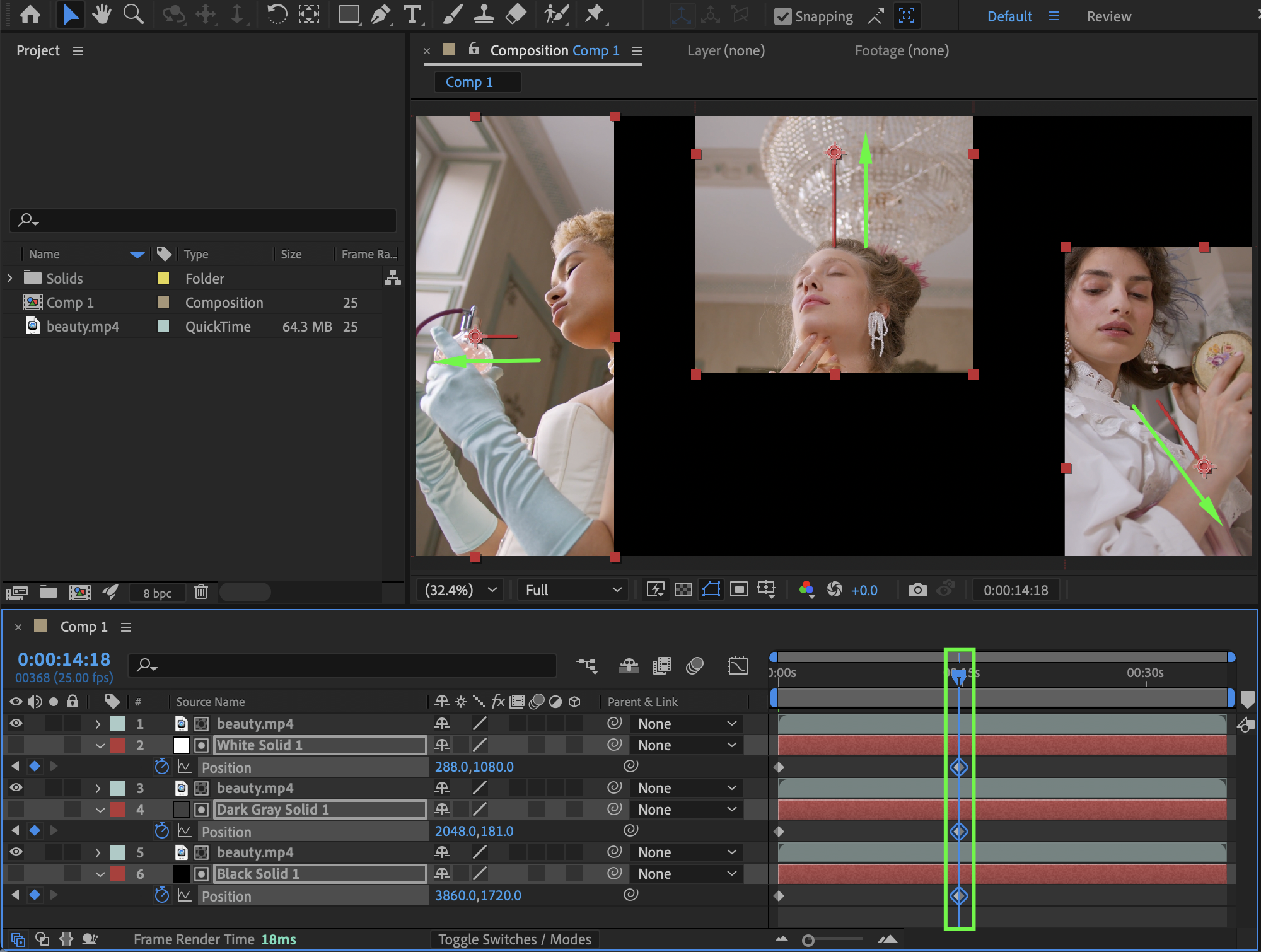 By using solids as track mattes, you can easily slice a single clip into multiple sections and animate them independently. This technique is flexible, resolution-independent, and perfect for creative transitions, split-screen layouts, and modern motion design.