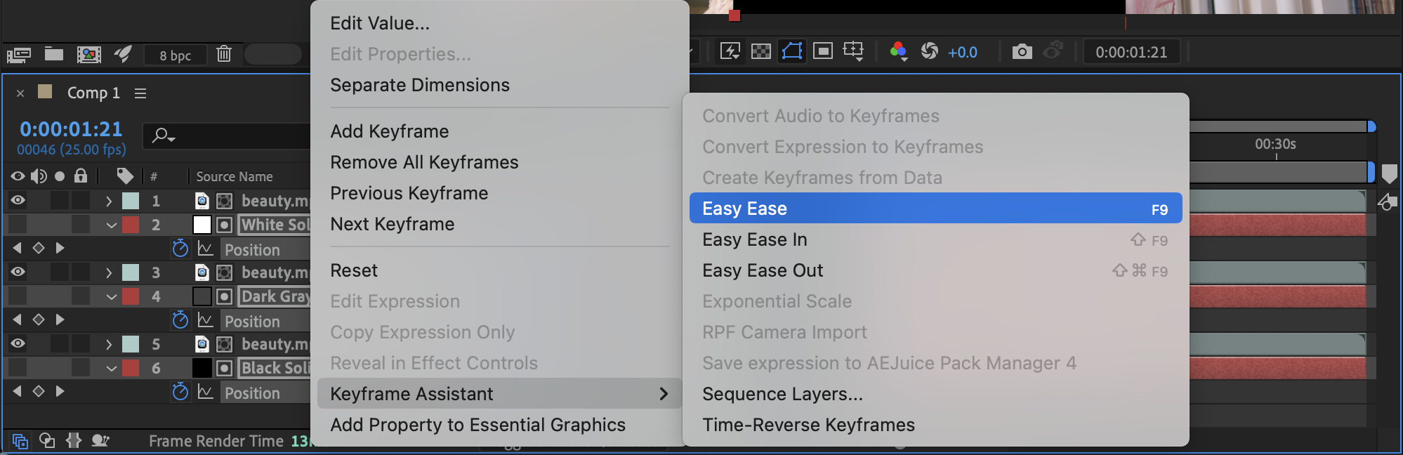 Select all position keyframes. Apply Easy Ease and fine-tune the motion using the Graph Editor for smoother movement.