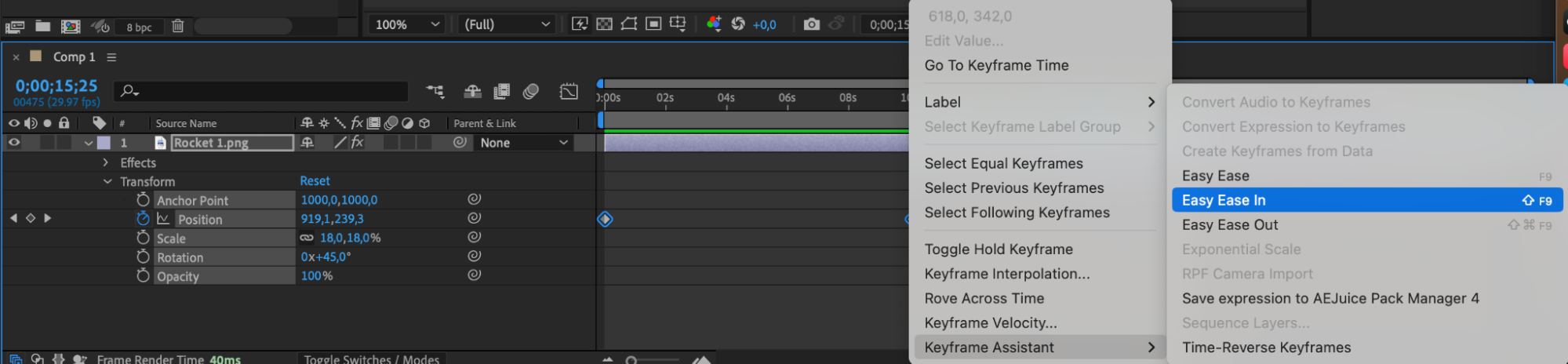 4. Utilize the Easy Ease Function: The Easy Ease function in After Effects is a convenient shortcut that automatically applies easing to selected keyframes. It adds a natural deceleration or acceleration to the animation, smoothing out the transitions. To use it, right-click on the keyframes and choose “Easy Ease” or use the keyboard shortcut F9.