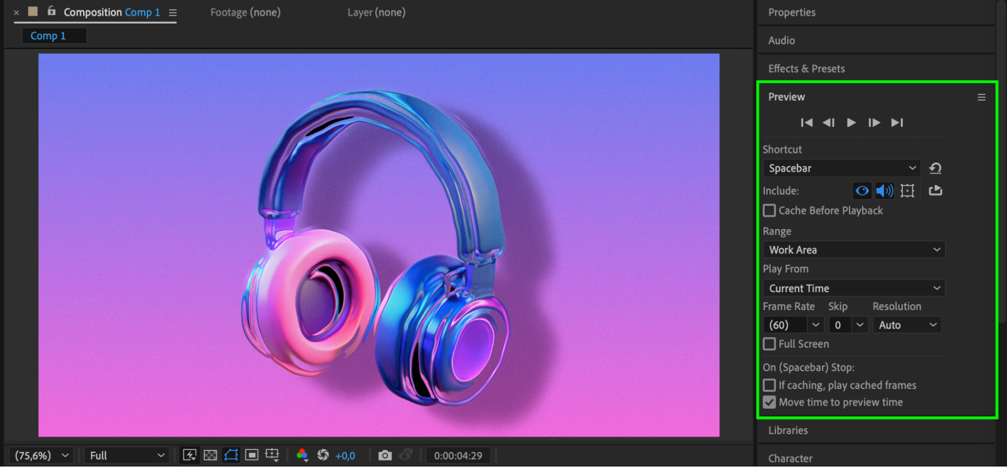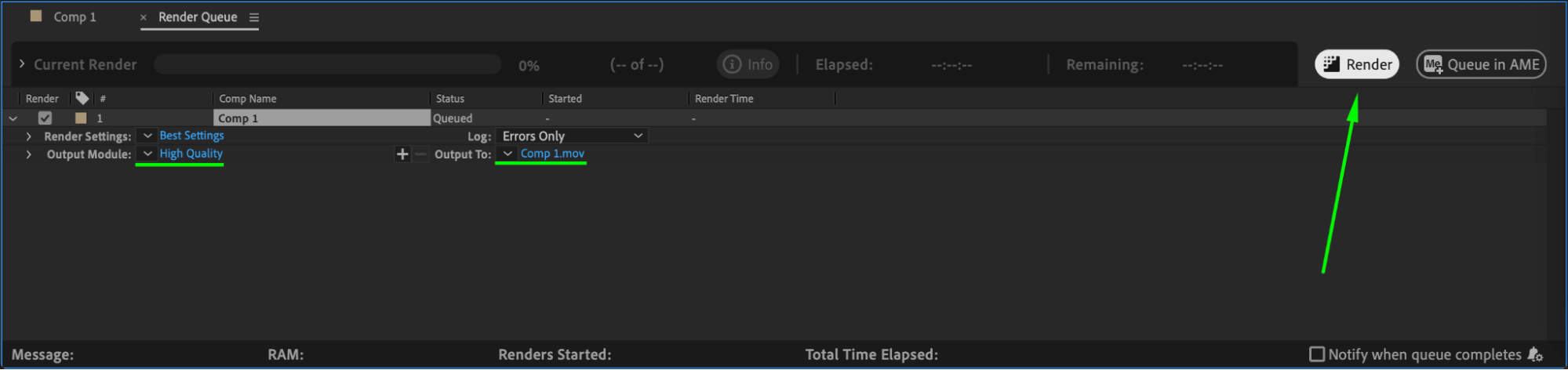 Once you are happy with the speed adjustments, render your animation by going to Composition > Add to Render Queue. Choose your settings and export the final file.