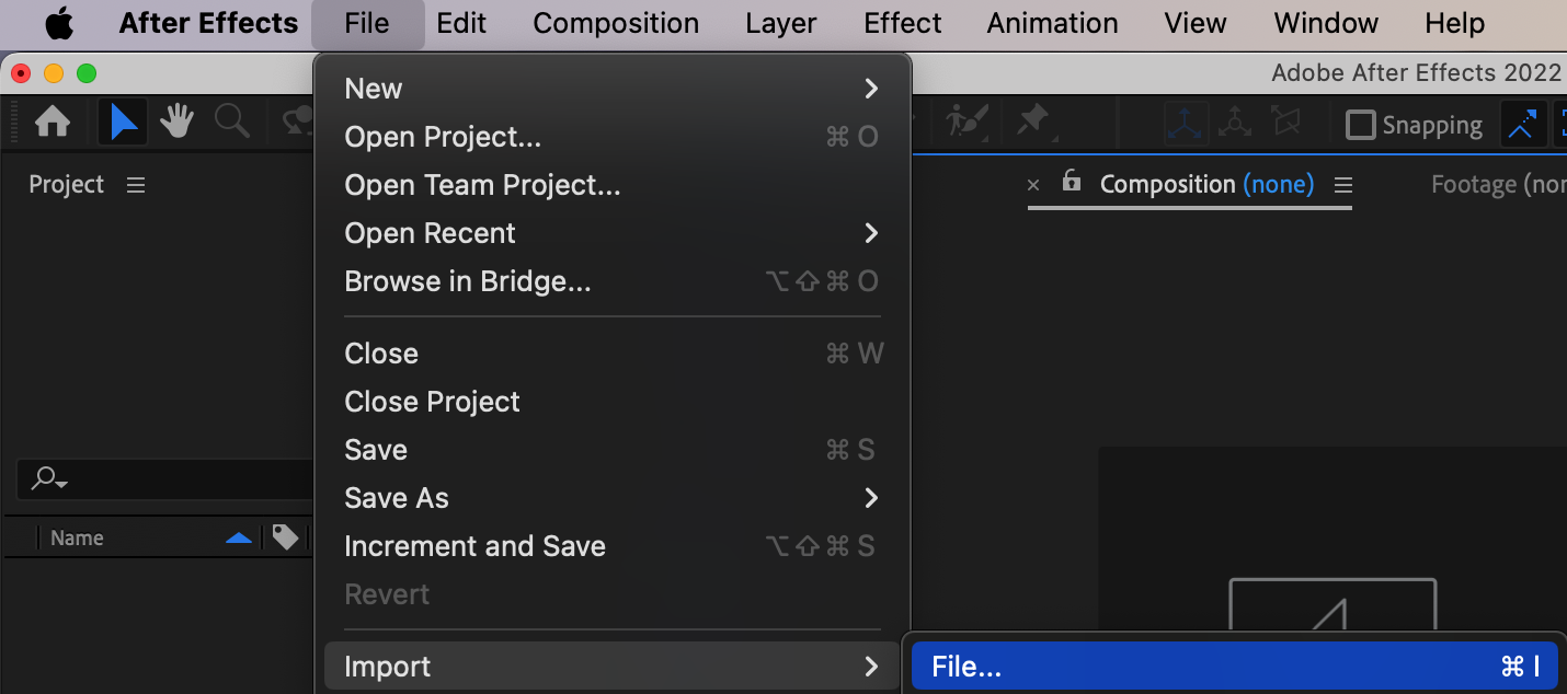 Use File > Import > File to import your video into After Effects.