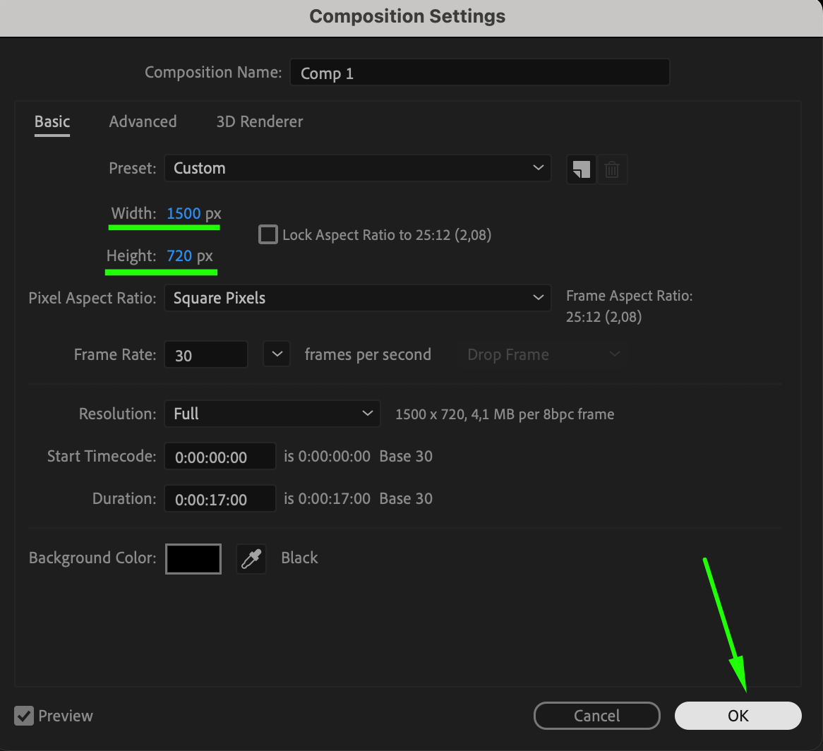 Open After Effects and create a new composition by selecting Composition > New Composition, and choose your preferred resolution.
