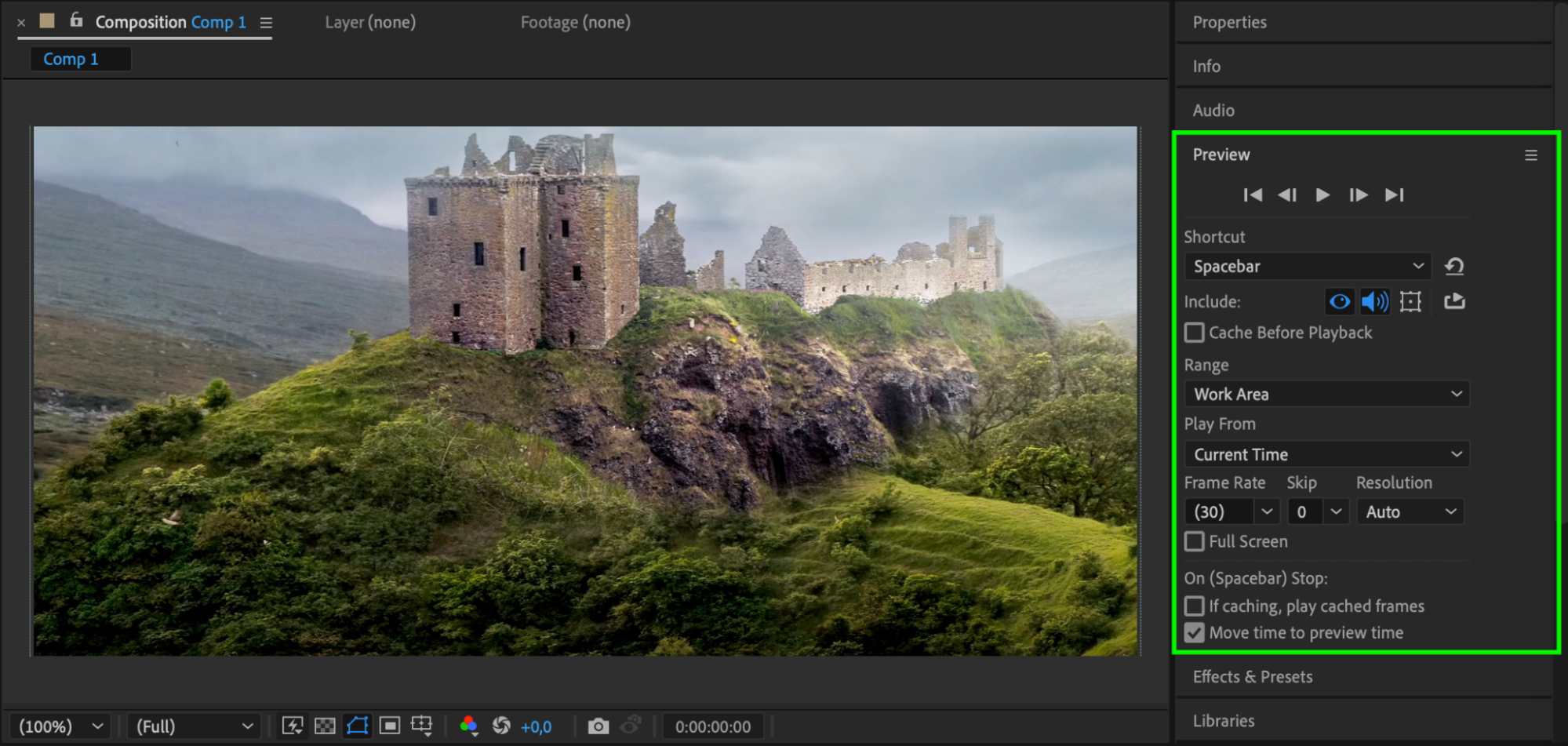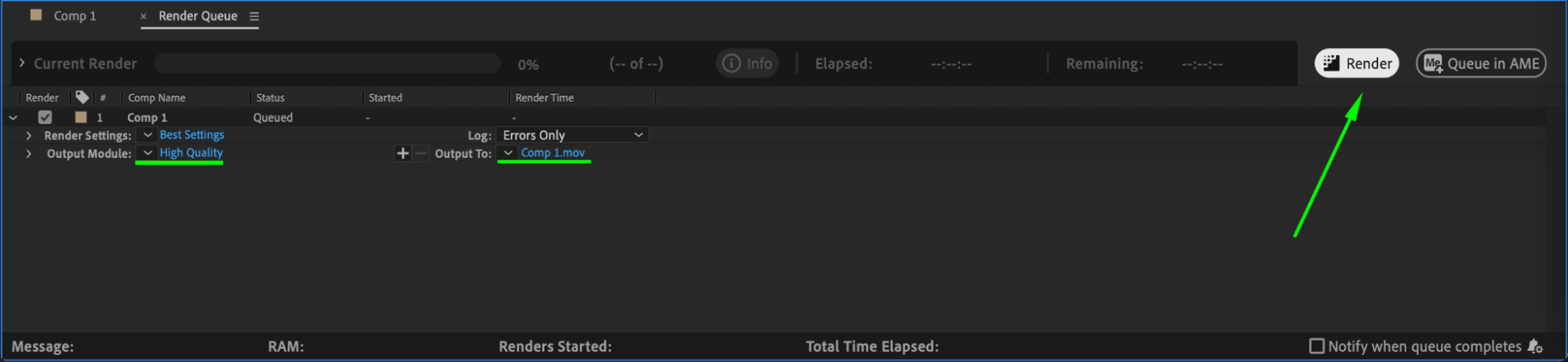 Once satisfied with the stretched video, go to Composition > Add to Render Queue, choose your output format, and click Render to export the final file.