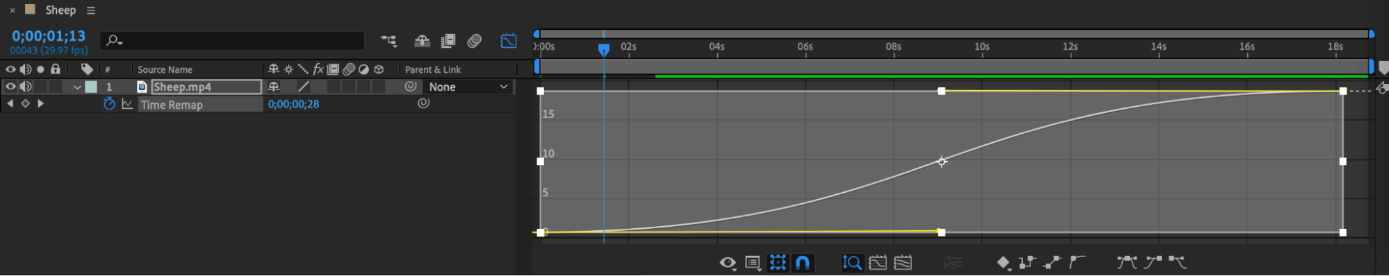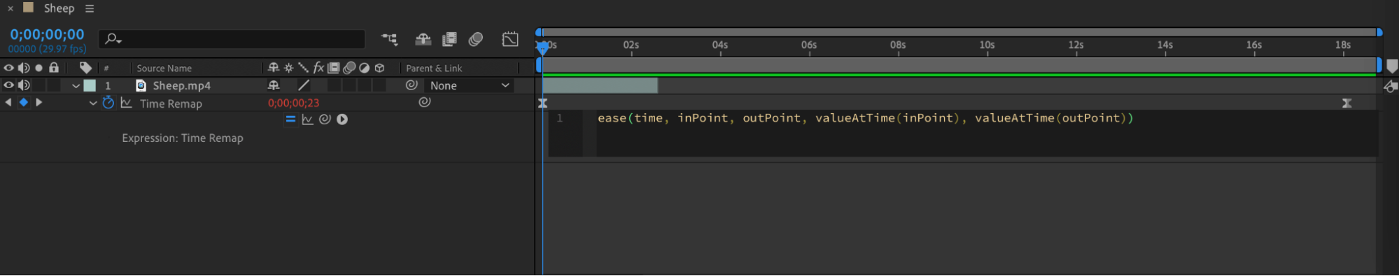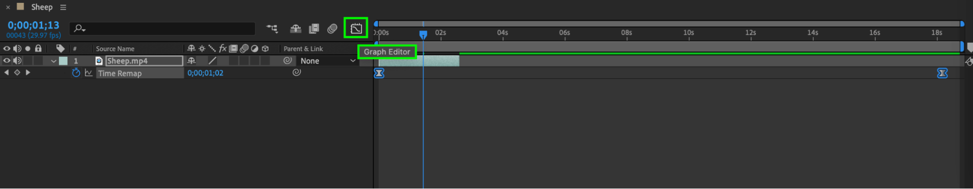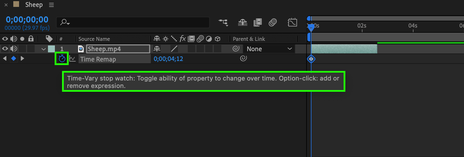In the Time Remap section, at the end of the video layer on the timeline panel, an automatic keyframe is created. Using the stopwatch icon, create a keyframe at the beginning of the composition.