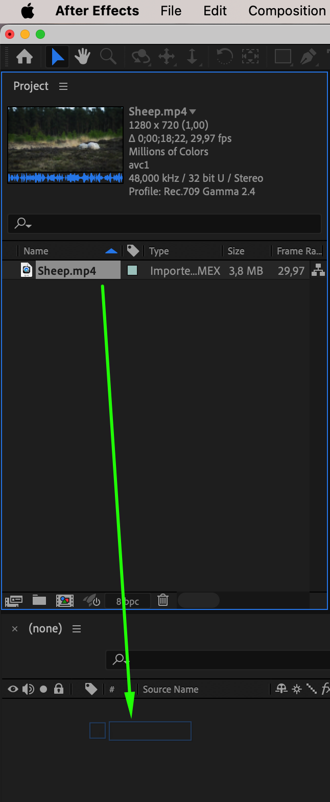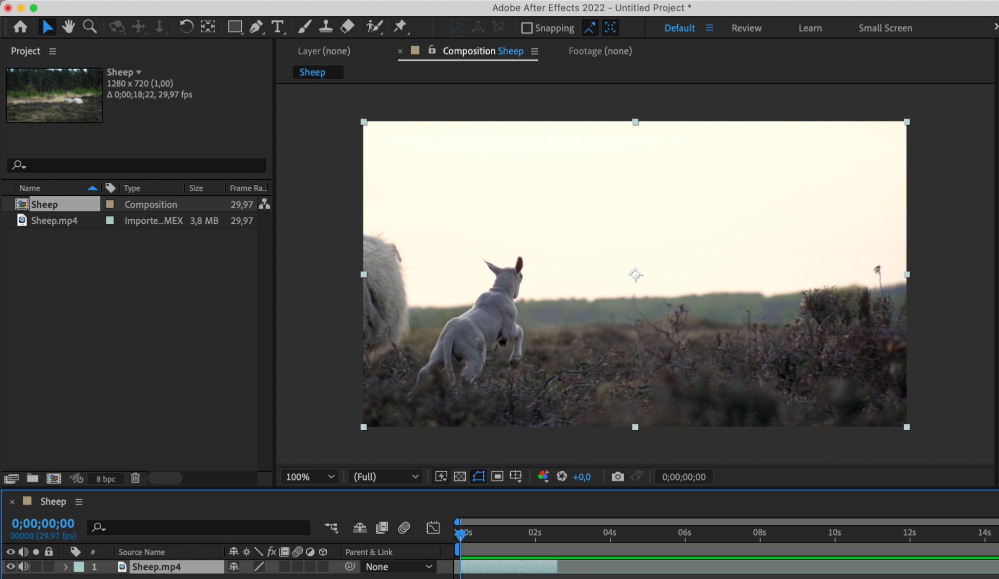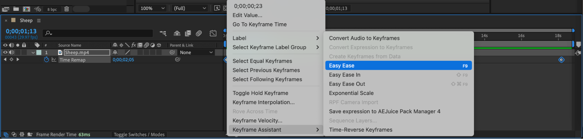 In the Time Remap section, at the end of the video layer on the timeline panel, an automatic keyframe is created. Using the stopwatch icon, create a keyframe at the beginning of the composition.