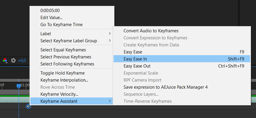 6. Keyframe Assistant: Keyframe Assistant in Adobe After Effects provides a set of tools for precise control of keyframes in animation. This toolkit includes features such as “Easy Ease” for creating smooth transitions, “Time-Reverse Keyframes” for changing the animation direction, “Exponential Scale” for additional control over scale changes, and other options that streamline the animation process. By using Keyframe Assistant, you can elevate the quality of your animations, making them more dynamic and professional.