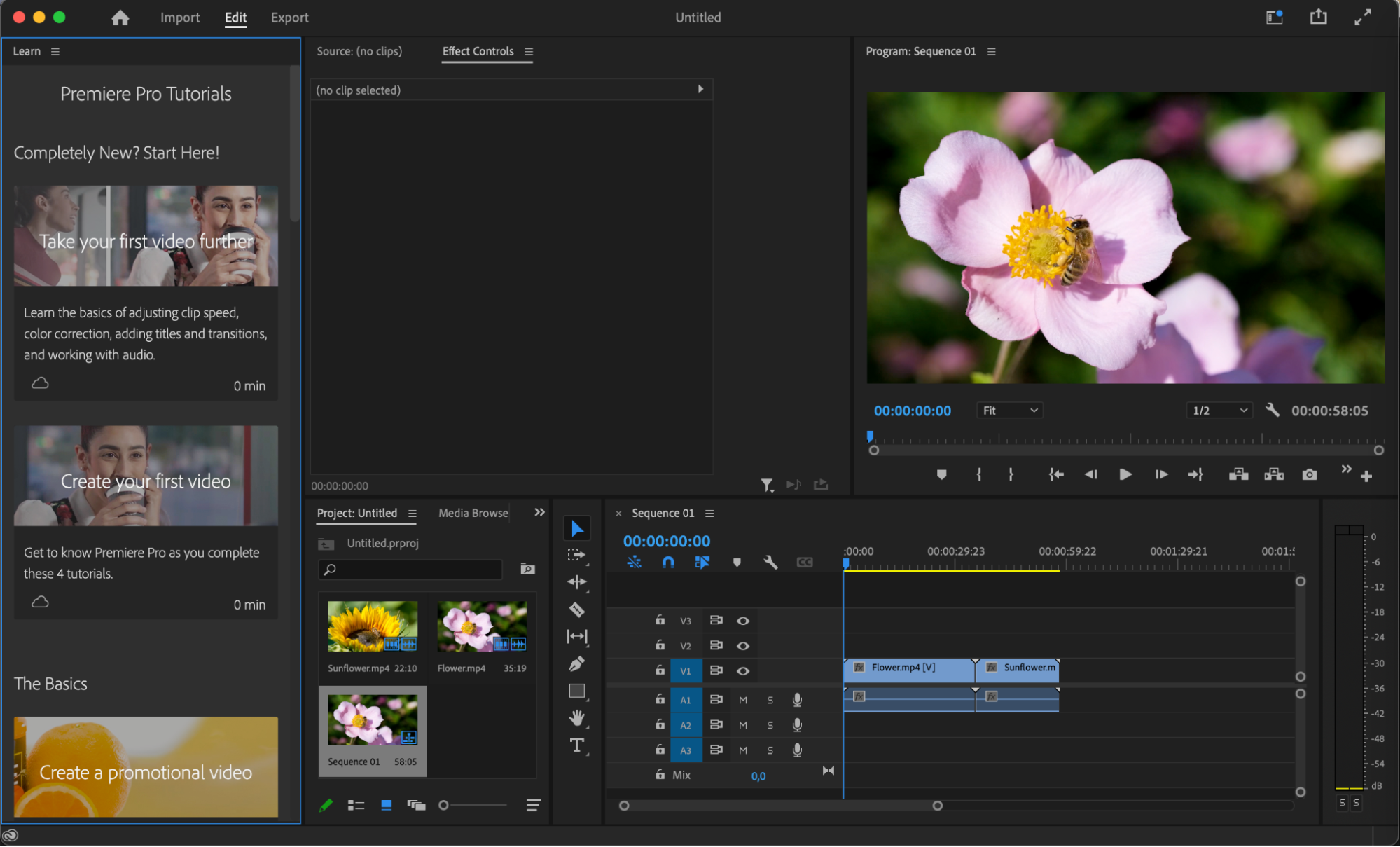 After importing the files, they will appear in the project panel. Drag them onto the timeline and start working.