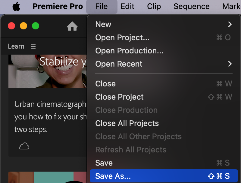1. Save the Project in Premiere Pro: