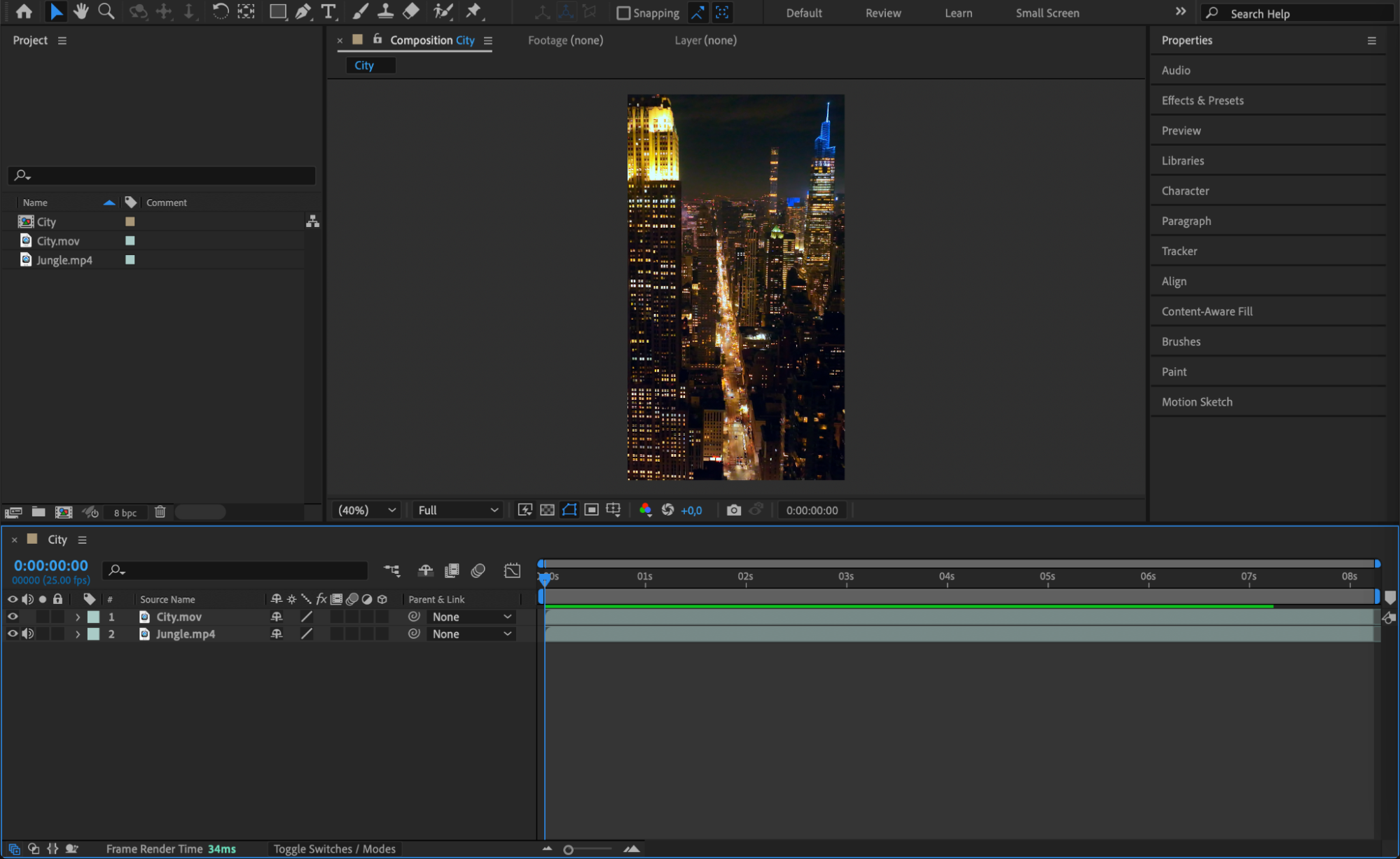 Launch After Effects and open the project where you want to work with masks. Import your media files if needed and drag them onto the timeline. Select the layer you want to mask.