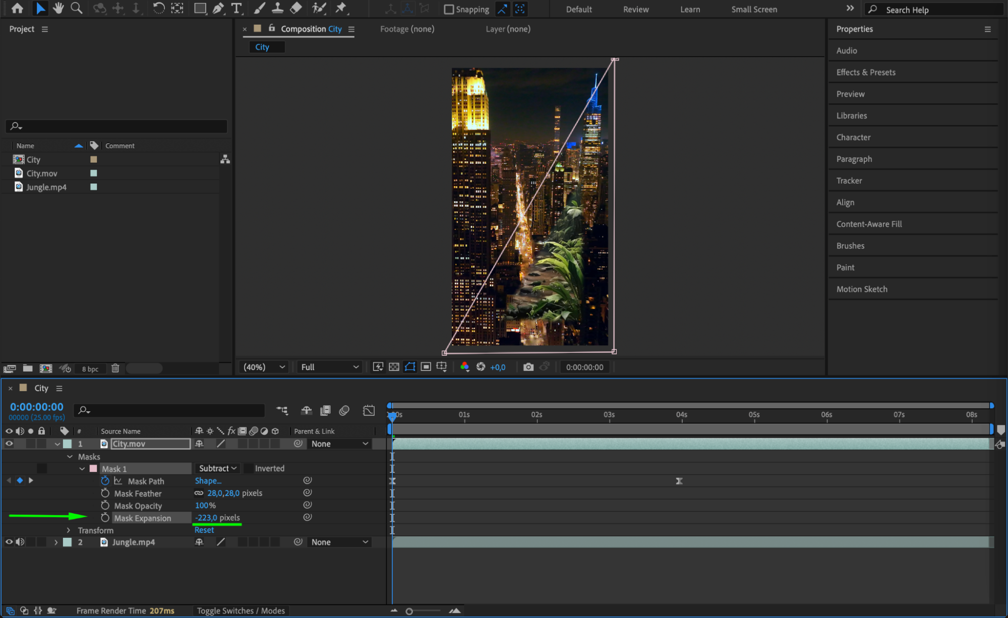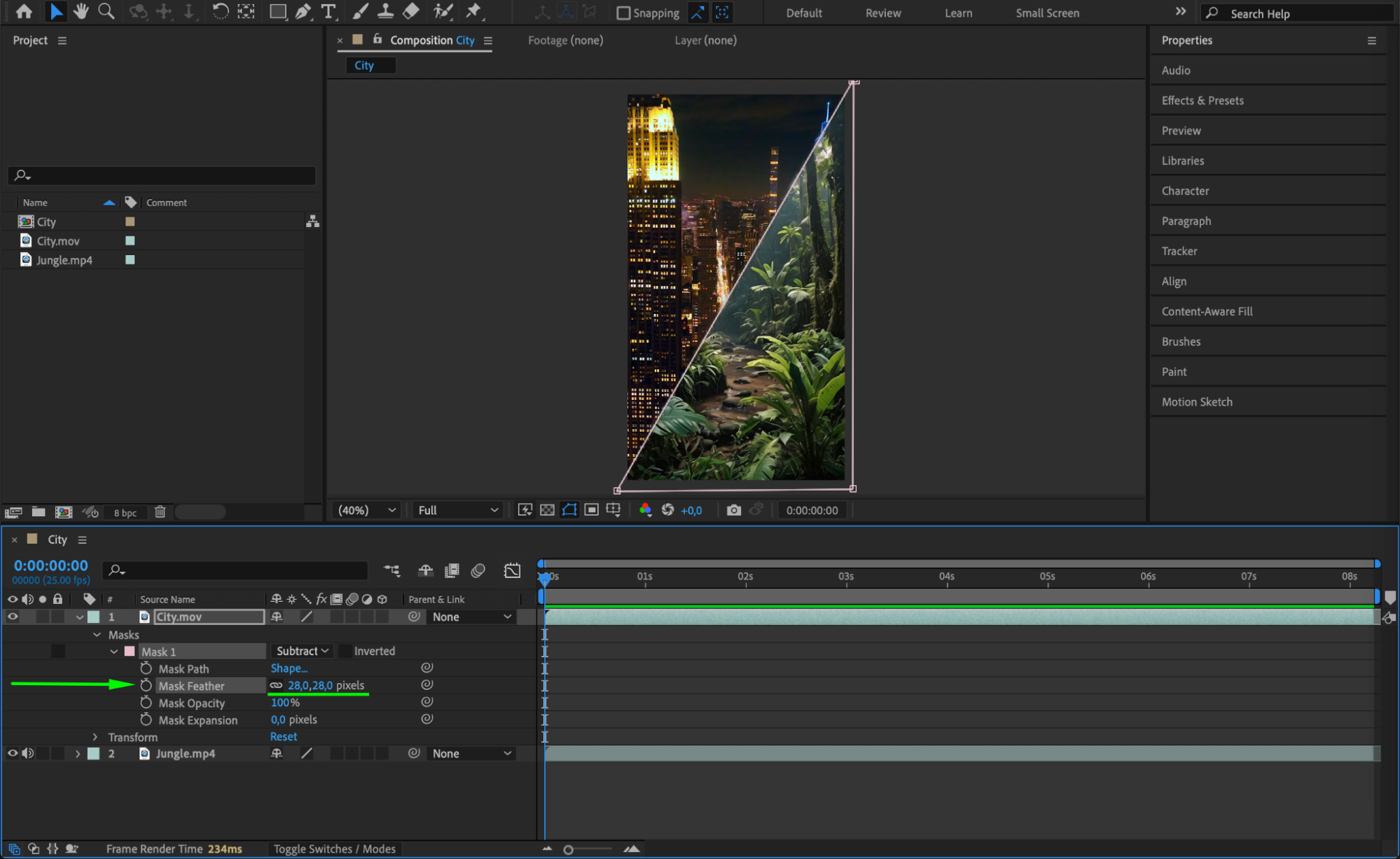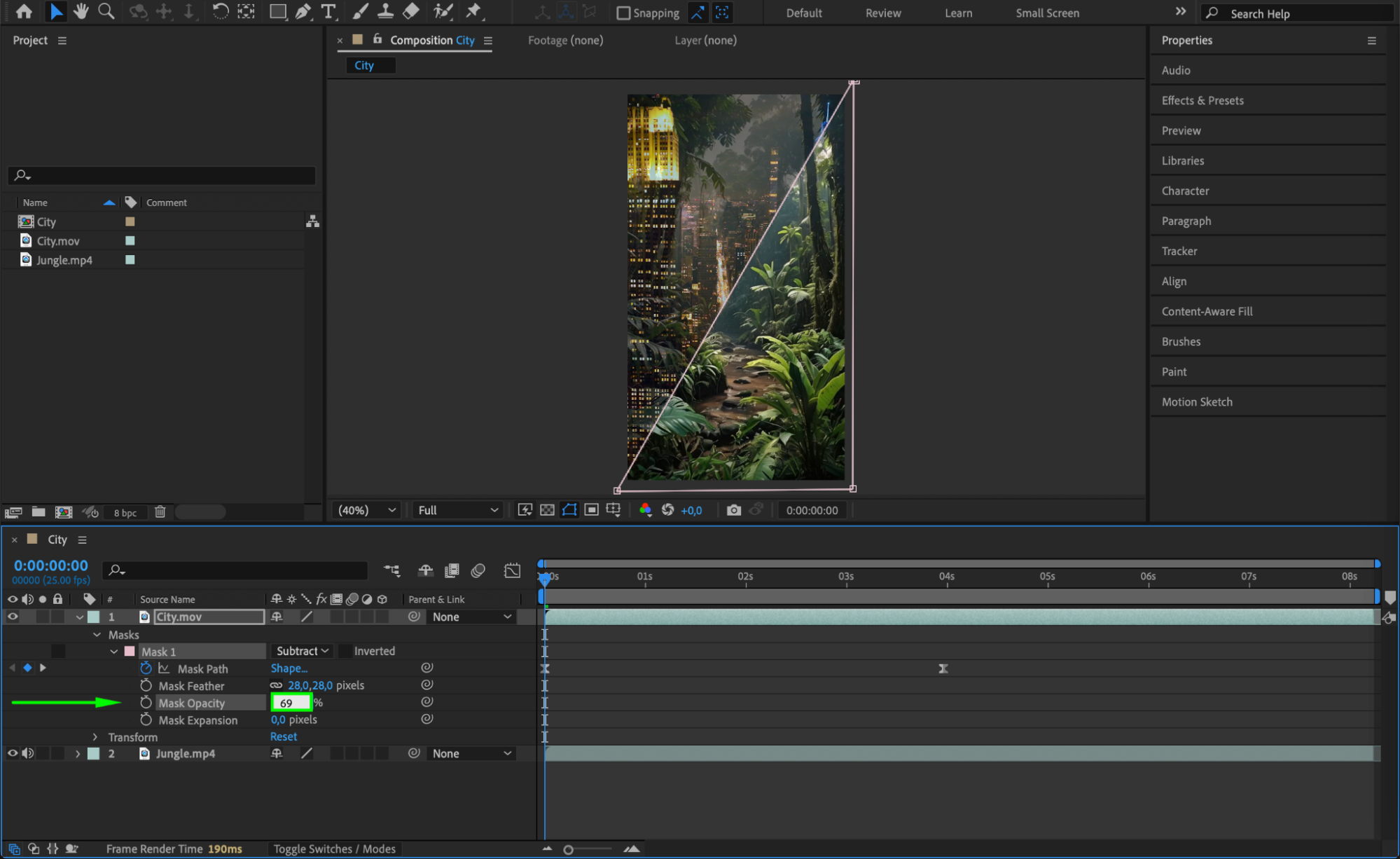 Adjust Mask Feather to blur the edges of the mask. Use Mask Opacity to fade the mask in or out, and Mask Expansion to make it grow or shrink without altering its original shape. These settings help blend the mask smoothly with the background.