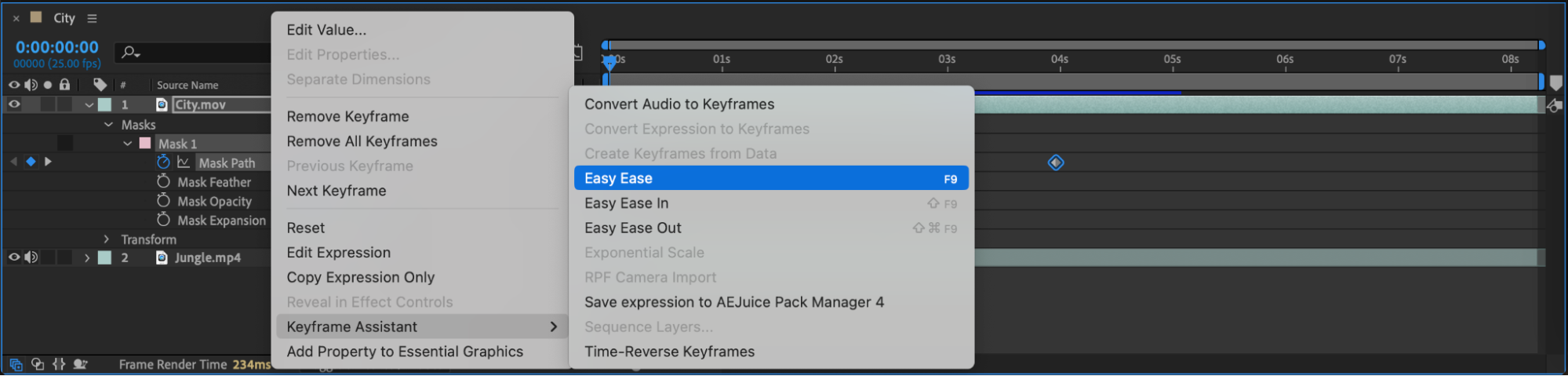 For a more natural motion, right-click on your keyframes and choose Keyframe Assistant > Easy Ease. Open the Graph Editor to adjust the speed curve of the animation. This can make your mask transitions feel more organic and professional.