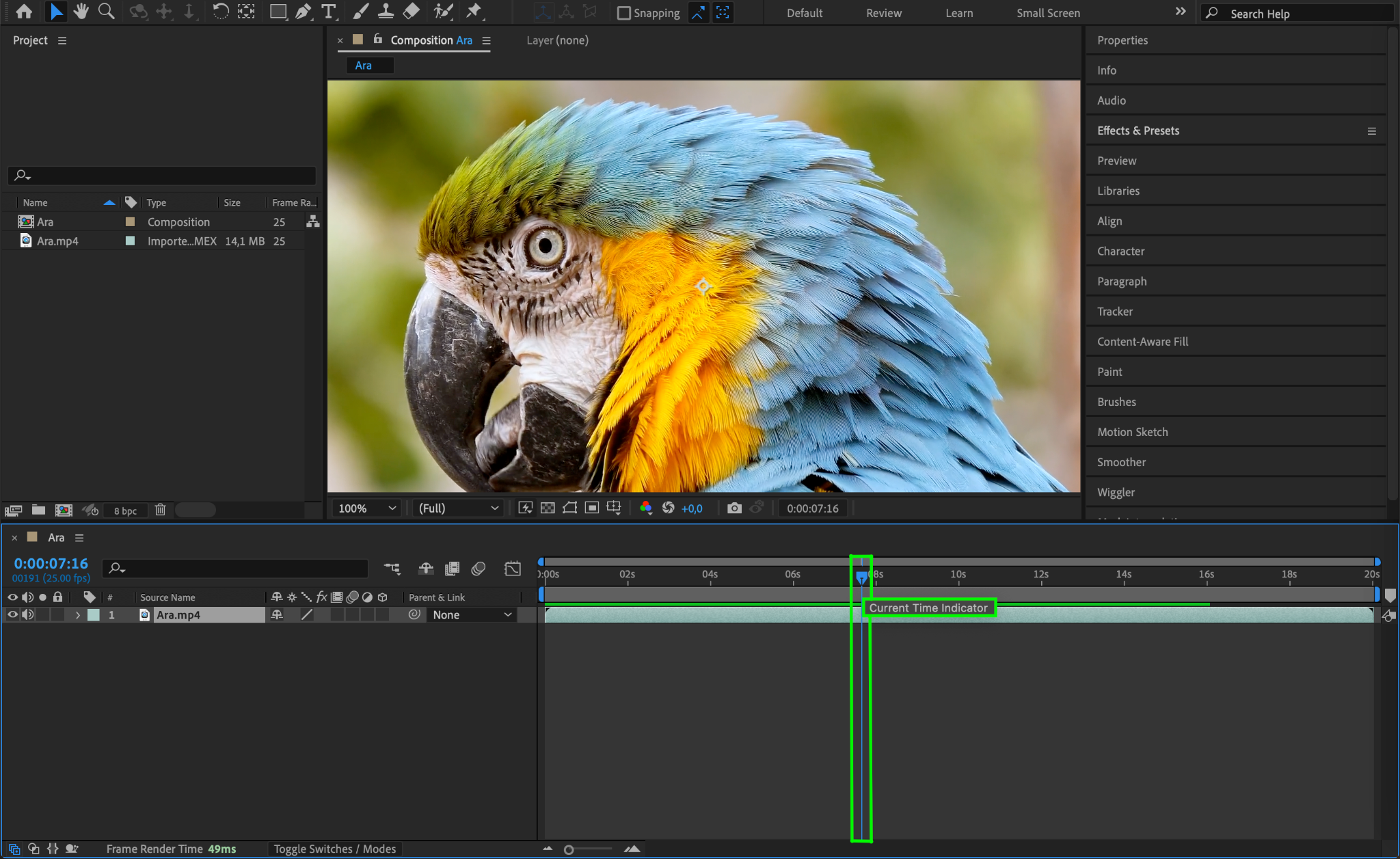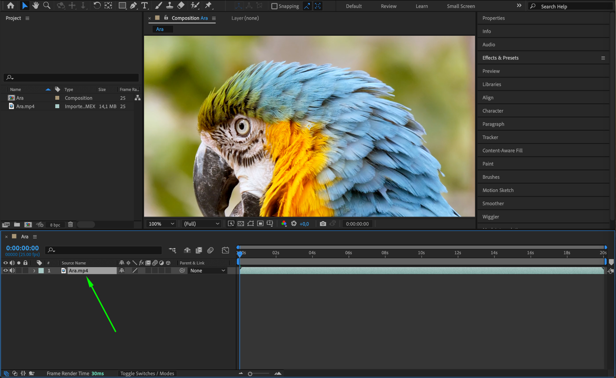 Once the CTI is in the correct position, use the shortcut “Alt/Option + [” to trim the start of the layer. This action will adjust the layer’s in point to the position of the CTI without deleting any footage, allowing you to keep the rest of the layer intact.