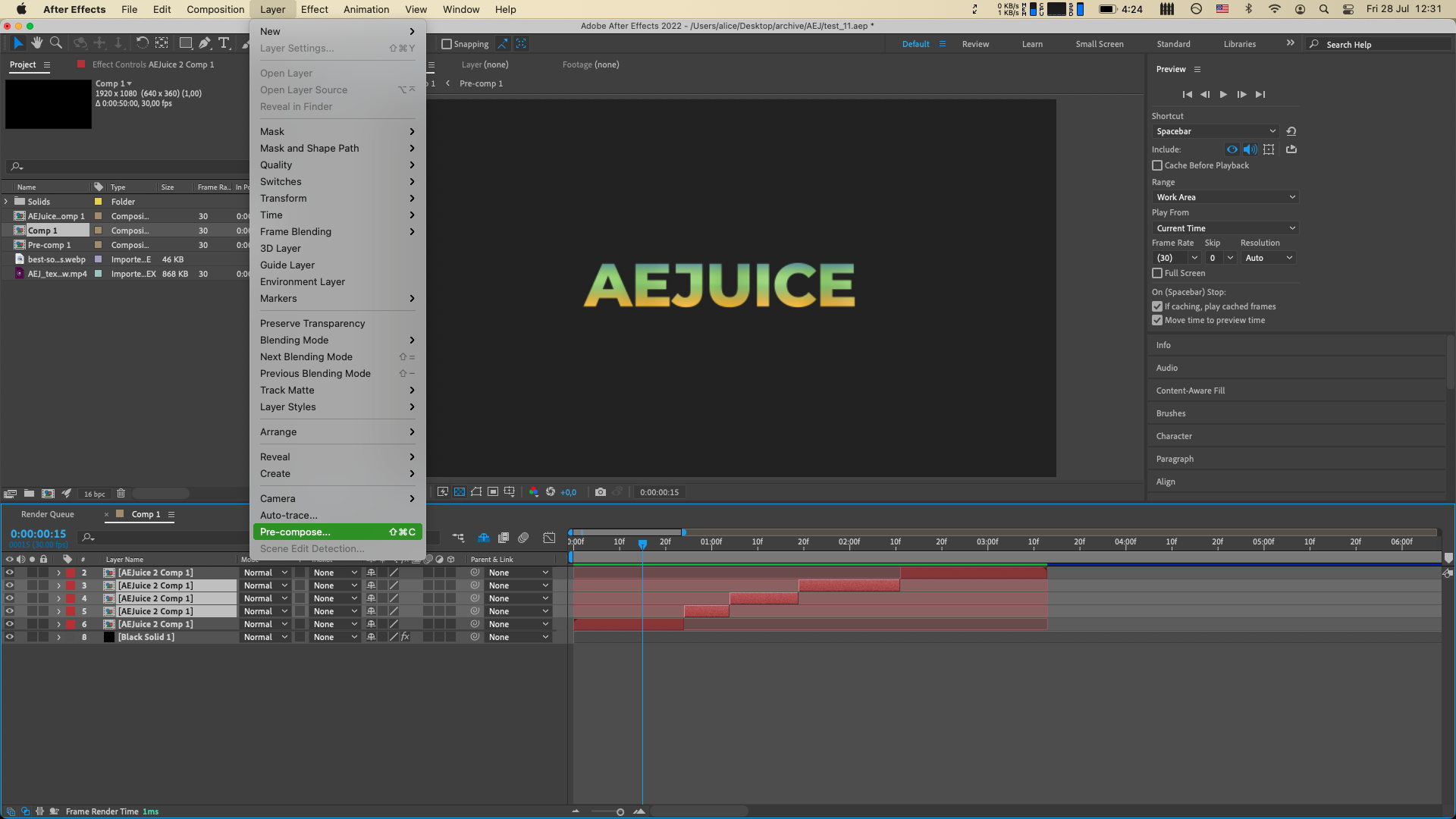 4. Precomposing Clips: