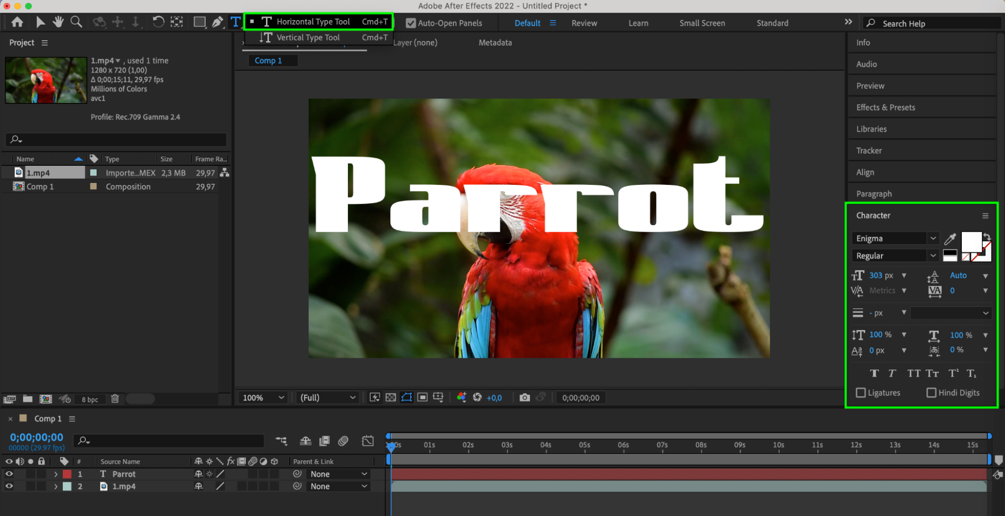 3. Add a masking layer. This could be, for example, text or a shape. Place this layer above what you want to apply track matte to.