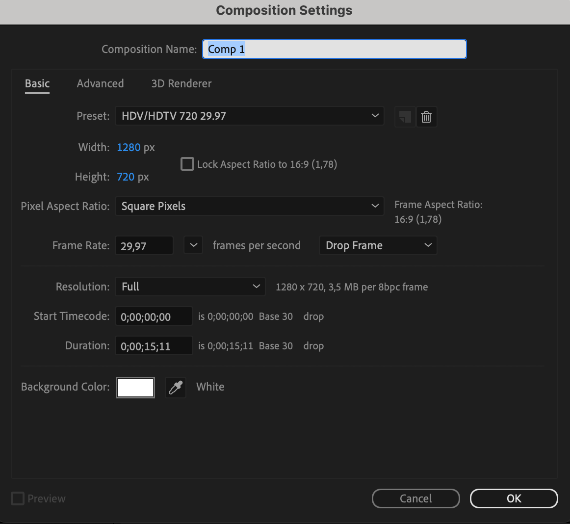 Create a composition and adjust its settings.