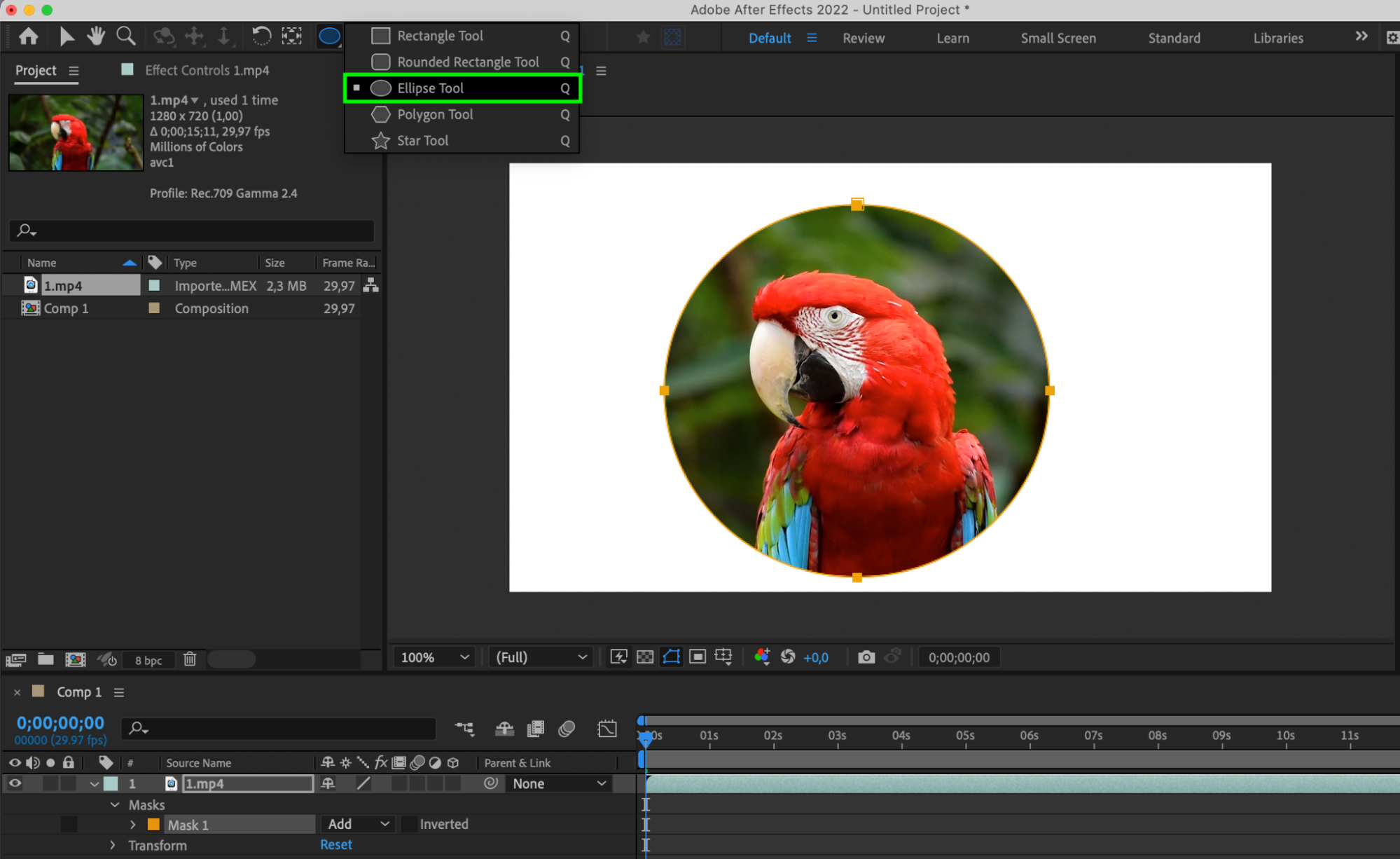 Use the shape tools in the toolbar to draw the desired shape directly in the composition window. You can choose from a variety of shapes, such as rectangles, ellipses, polygons, and others.