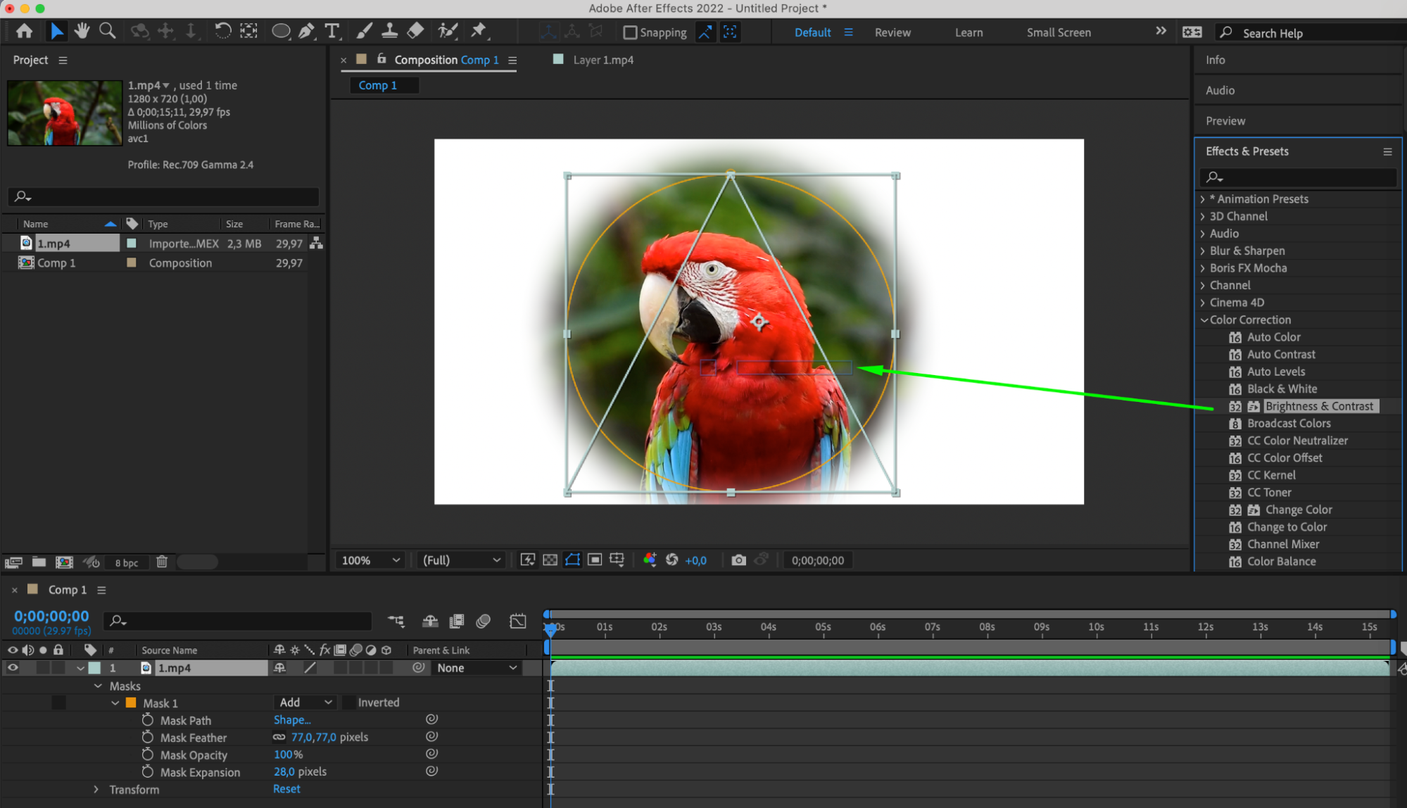 Now that the mask is applied to the layer, adjust its properties such as position, size, feathering, and opacity to achieve the desired effect. Use the mask’s control points and handles to refine its shape and position as needed.