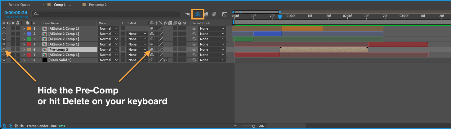 Lastly, if you do not need precomposed layers, you can either delete or hide them.