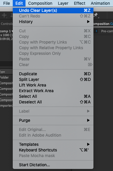 Guide how to undo in After Effects